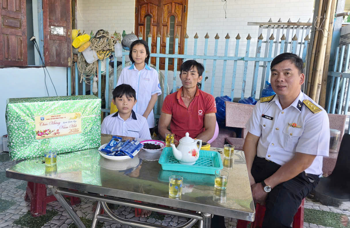 HQ Online - Ngày 21/1, tại xã Phước Dinh, tỉnh Khánh Hòa, đoàn công tác Trung tâm Bảo đảm Kỹ thuật 719, Vùng 4 Hải quân do Thượng tá Lê Trọng Thông, Phó Chính ủy Trung tâm làm trưởng đoàn đến thăm và trao quà tặng con ngư dân và quân nhân mắc bệnh hiểm nghèo.
