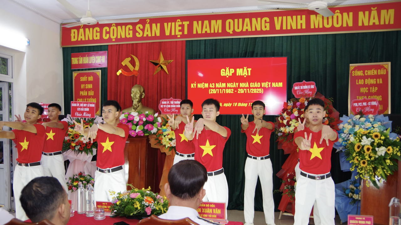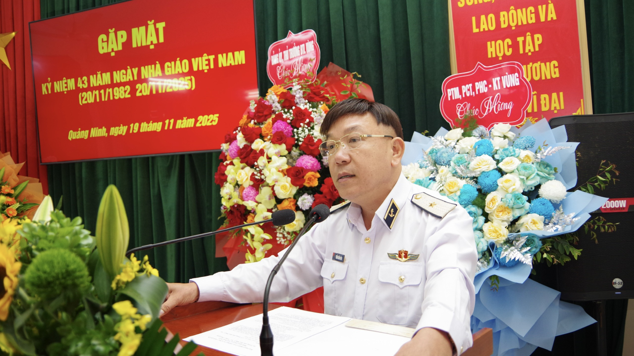 HQ Online - Chiều 19/11, tại Quảng Ninh, Trung tâm Huấn luyện chuyên môn kỹ thuật nghiệp vụ (CMKT-NV) Vùng 1 Hải quân tổ chức gặp mặt nhân kỷ niệm 43 năm Ngày nhà giáo Việt Nam (20/11/1982 – 20/11/2025). Chuẩn Đô đốc Trần Xuân Văn, Bí thư Đảng ủy, Chính ủy Vùng dự, chúc mừng và phát biểu động viên.