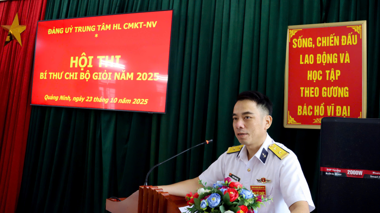 HQ Online - Ngày 23/10, tại Quảng Ninh, Trung tâm Huấn luyện chuyên môn kỹ thuật-nghiệp vụ, Vùng 1 Hải quân tổ chức Hội thi bí thư chi bộ giỏi năm 2025. Trung tá Quách Minh Phú, Bí thư Đảng ủy, Chính trị viên Trung tâm chủ trì hội thi.