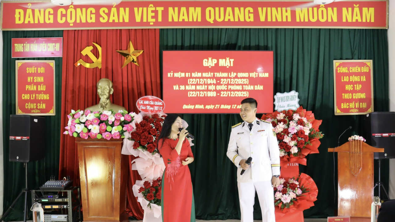 HQ Online - Chiều 21/12, tại phường Hà Tu, tỉnh Quảng Ninh, Trung tâm Huấn luyện Vùng 1 Hải quân tổ chức gặp mặt kỷ niệm 81 năm Ngày thành lập Quân đội nhân dân Việt Nam (22/12/1944–22/12/2025), 36 năm Ngày hội quốc phòng toàn dân (22/12/1989 - 22/12/2025). Trung tá Quách Minh Phú, Bí thư Đảng ủy, Chính trị viên Trung tâm chủ trì.
