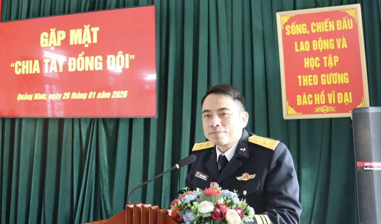 HQ Online - Ngày 26/1, tại phường Hà Tu, tỉnh Quảng Ninh, Trung tâm Huấn luyện Vùng 1 Hải quân tổ chức gặp mặt, chia tay hạ sĩ quan - binh sĩ hoàn thành nghĩa vụ quân sự năm 2026. Trung tá Quách Minh Phú, Bí thư Đảng ủy, Chính trị viên Trung tâm chủ trì buổi gặp mặt.