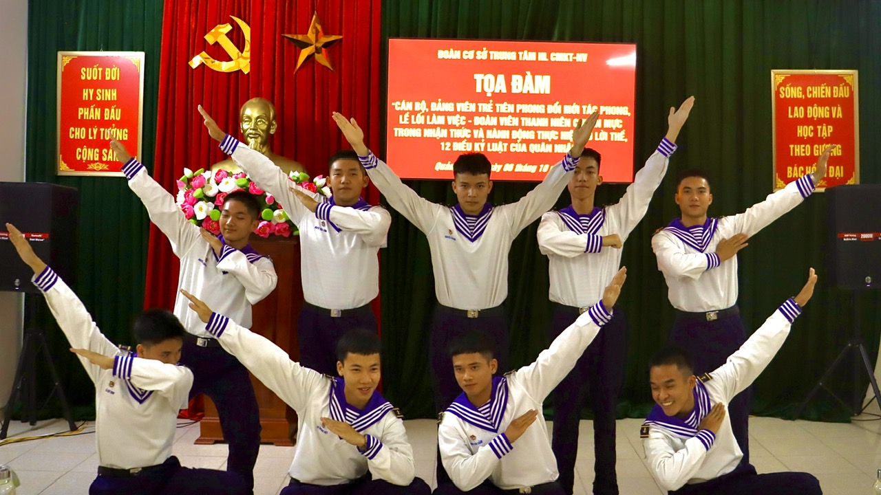 HQ Online - Tối 6/10, tại Quảng Ninh, Đoàn cơ sở Trung tâm Huấn luyện chuyên môn kỹ thuật-nghiệp vụ (CMKT-NV) Vùng 1 Hải quân tổ chức tọa đàm thanh niên với chủ đề “Cán bộ đoàn, đảng viên trẻ tiên phong đổi mới tác phong, lề lối làm việc - Đoàn viên thanh niên chuẩn mực trong nhận thức và hành động thực hiện 10 lời thề, 12 điều kỷ luật của quân nhân”.