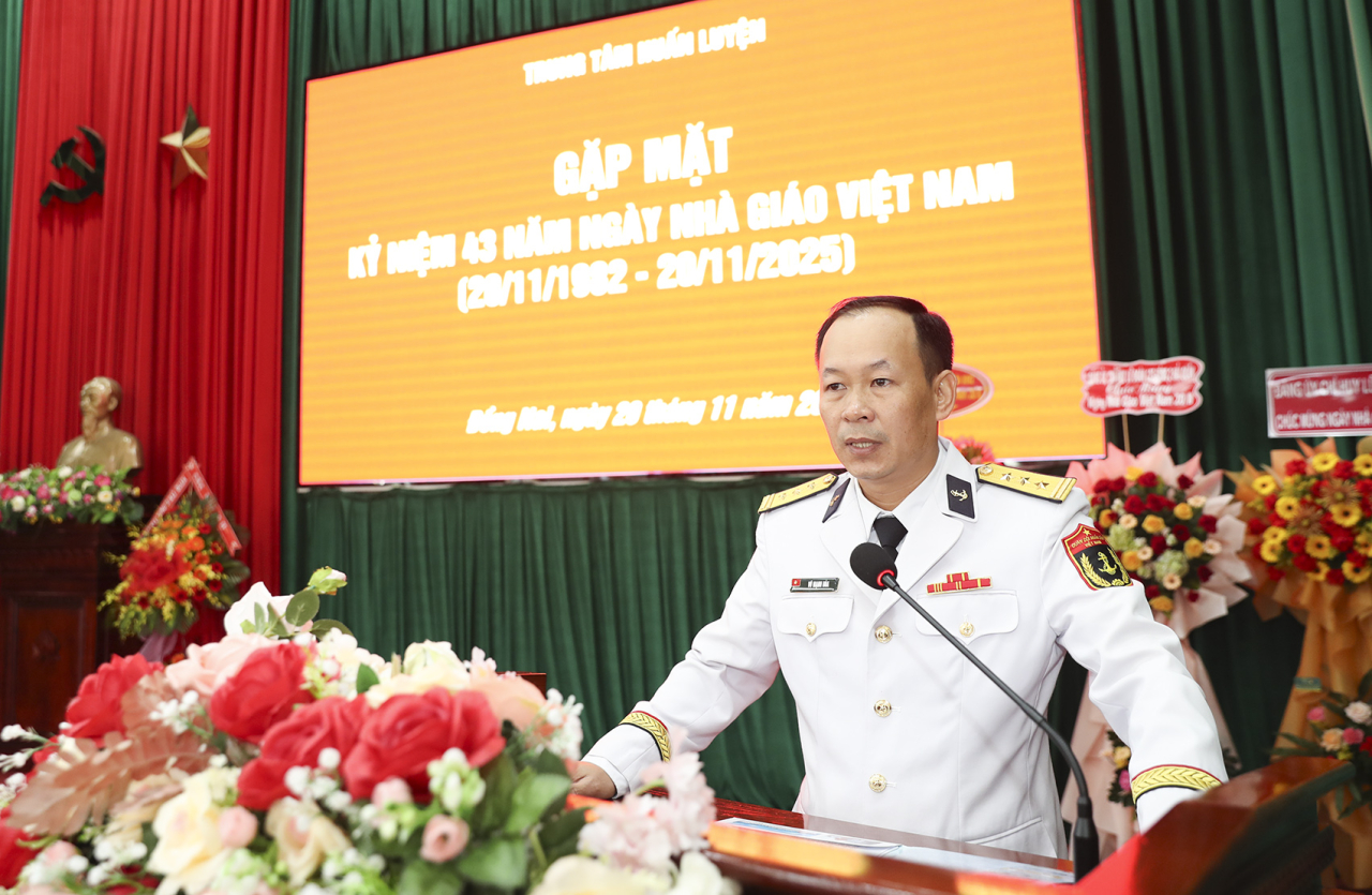 Tại buổi gặp mặt, chỉ huy Trung tâm đọc thư chúc mừng của Bộ trưởng Bộ Quốc phòng gửi đội ngũ nhà giáo, cán bộ quản lý giáo dục trong Quân đội. Các đồng chí cán bộ quản lý, giáo viên, học viên của Trung tâm phát biểu cảm tưởng, tâm tư, nguyện vọng trong Ngày Nhà giáo Việt Nam.