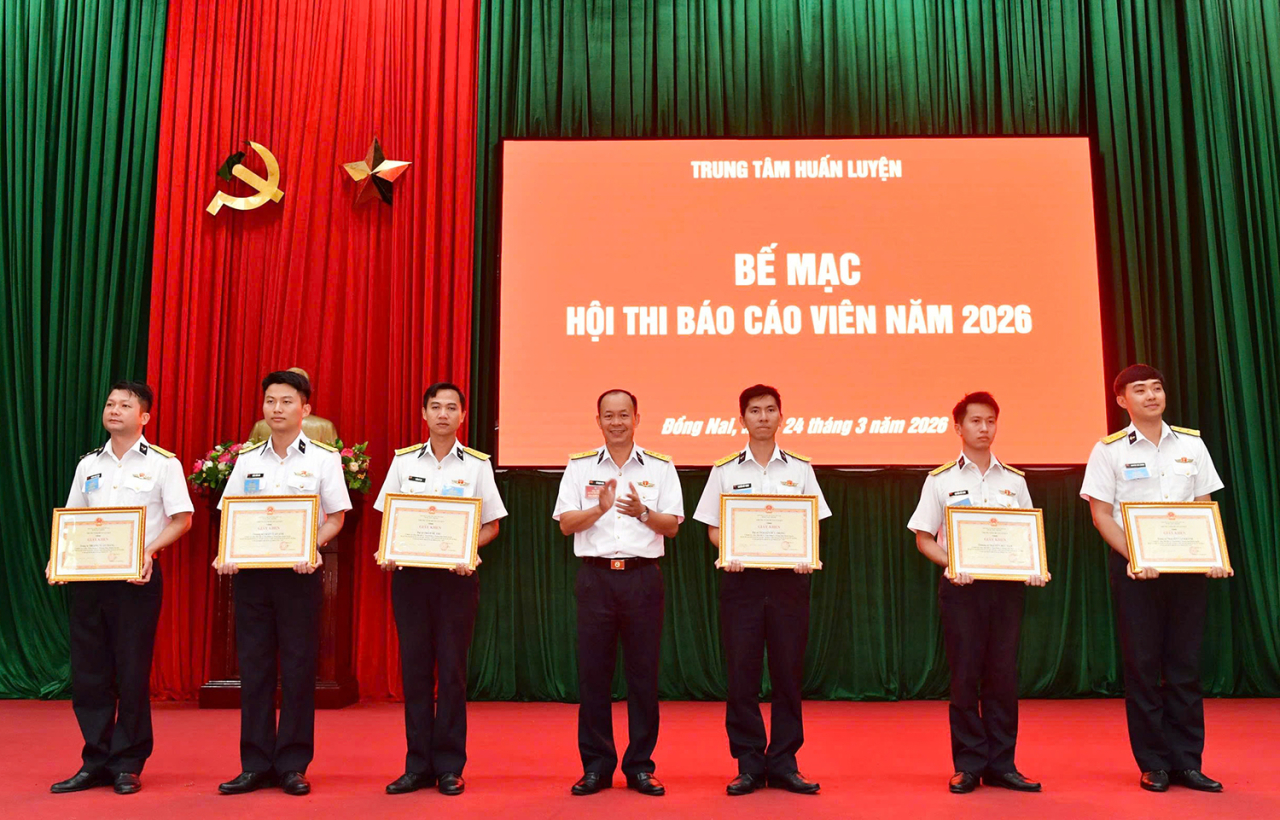HQ Online - Ngày 24/3, tại xã Nhơn Trạch (tỉnh Đồng Nai), Trung tâm Huấn luyện, Vùng 2 Hải quân tổ chức bế mạc hội thi báo cáo viên năm 2026. Thượng tá Vũ Mạnh Hòa, Chính ủy Trung tâm dự, chỉ đạo.