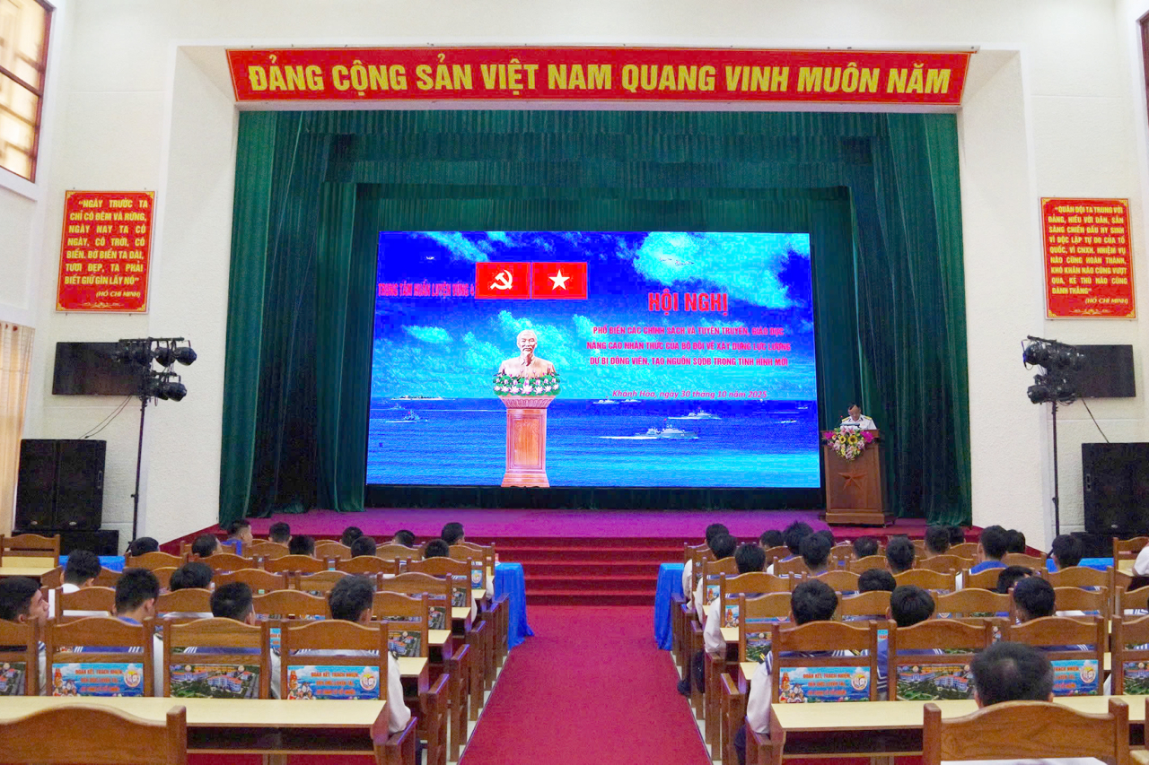 HQ Online - Sáng 30/10, tại phường Bắc Cam Ranh, tỉnh Khánh Hoà, Trung tâm Huấn luyện Vùng 4 Hải quân tổ chức Hội nghị phổ biến các chính sách và tuyên truyền, giáo dục nâng cao nhận thức của bộ đội về xây dựng lực lượng dự bị động viên, tạo nguồn sĩ quan dự bị trong tình hình mới. Thượng tá Bùi Văn Quê, Chủ nhiệm Chính trị Trung tâm dự và trực tiếp phổ biến, quán triệt nội dung. Tham dự có chỉ huy các cơ quan, đơn vị và hơn 60 hạ sĩ quan, chiến sĩ.