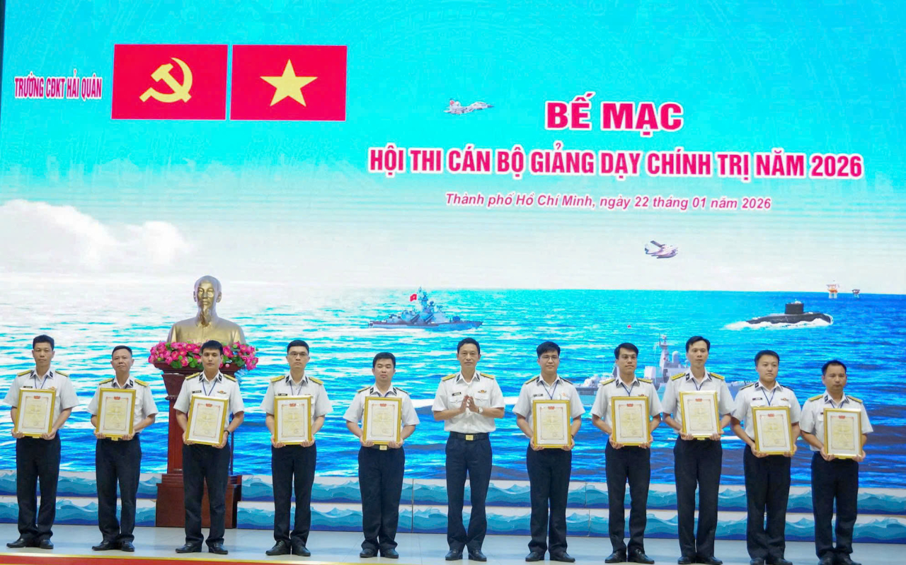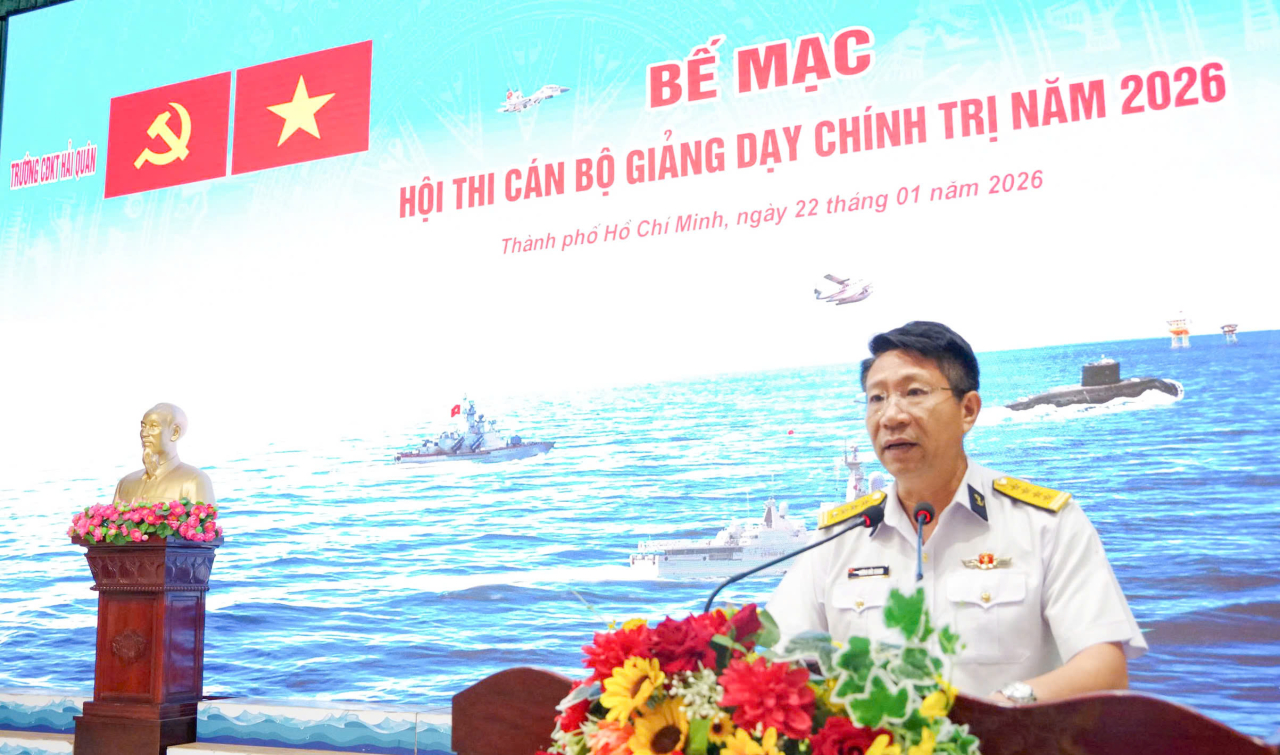 HQ Online - Chiều 22/1, tại TP. Hồ Chí Minh, Trường Cao đẳng Kỹ thuật (CĐKT) Hải quân bế mạc Hội thi cán bộ giảng dạy chính trị giỏi năm 2026. Đại tá Lương Đức Khanh, Bí thư Đảng ủy, Chính ủy nhà trường dự, chủ trì bế mạc.