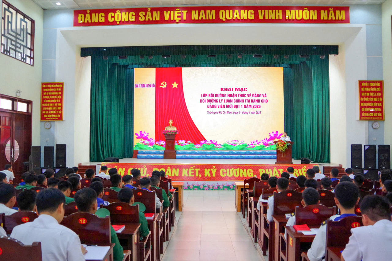 HQ Online - Chiều 1/4, tại TP. Hồ Chí Minh, Đảng ủy Trường Cao đẳng Kỹ thuật Hải quân khai mạc lớp bồi dưỡng lý luận chính trị cho đảng viên mới và nhận thức về Đảng cho quần chúng ưu tú đợt 1 năm 2026. Đại tá Lương Đức Khanh, Bí thư Đảng ủy, Chính ủy nhà trường dự, chỉ đạo.