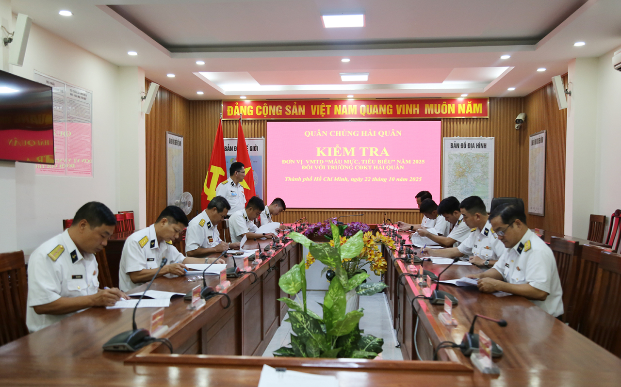 HQ Online - Ngày 22/10, đoàn kiểm tra của Quân chủng Hải quân do Đại tá Nguyễn Văn Đồng, Phó Tham mưu trưởng Hải quân, làm trưởng đoàn, đã làm việc với Trường Cao đẳng Kỹ thuật Hải quân về kết quả xây dựng đơn vị vững mạnh toàn diện “mẫu mực, tiêu biểu”.