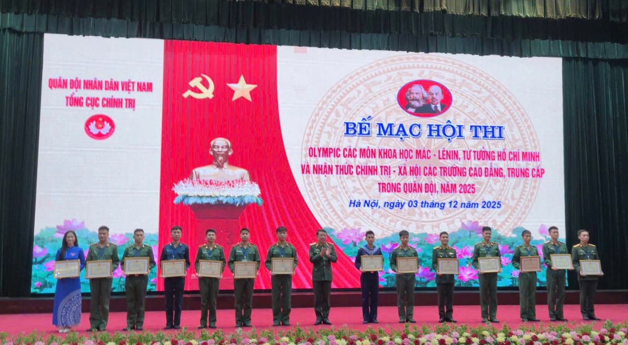 HQ Online - Từ ngày 1 đến 3/12, tại Hà Nội, Tổng cục Chính trị QĐND Việt Nam tổ chức Hội thi Olympic các môn khoa học Mác-Lênin, tư tưởng Hồ Chí Minh và nhận thức chính trị - xã hội dành cho học viên các trường trung cấp, cao đẳng trong toàn quân. Hội thi năm nay quy tụ 14 đội tuyển đến từ 14 nhà trường quân đội.