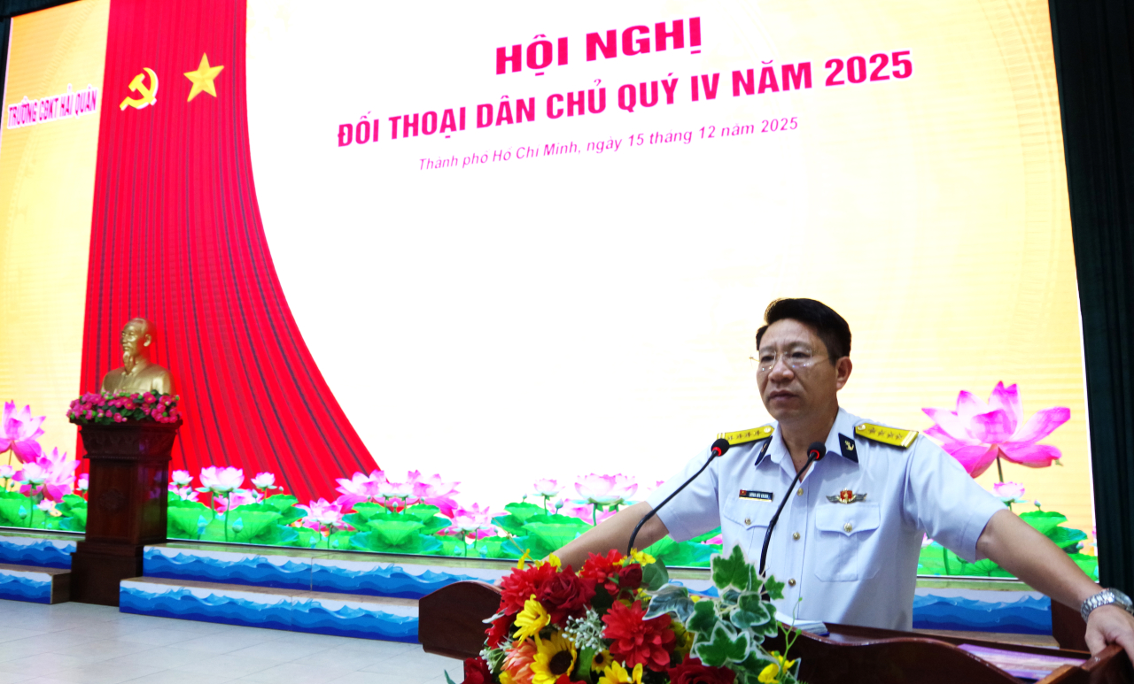 HQ Online - Chiều 15/12, tại TP. Hồ Chí Minh, Trường Cao đẳng Kỹ thuật Hải quân tổ chức đối thoại dân chủ Quý IV năm 2025. Đại tá Lương Đức Khanh, Bí thư Đảng ủy, Chính ủy nhà trường chủ trì.