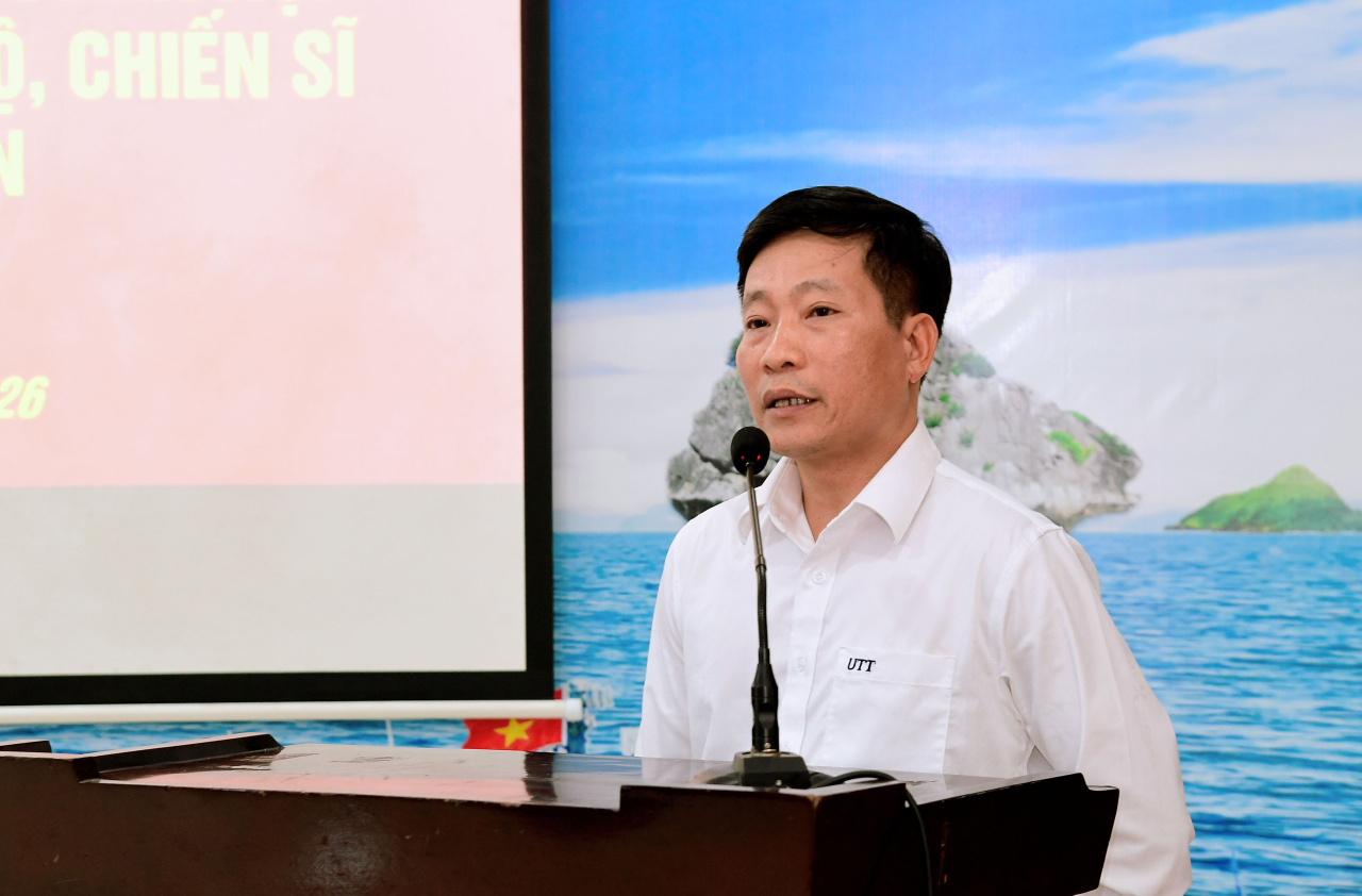 Thay mặt đoàn công tác, PGS, TS Nguyễn Hoàng Long cảm ơn sự đón tiếp chu đáo, trọng thị mà Bộ Tư lệnh Vùng 1 đã dành cho đoàn cũng như đã cung cấp những thông tin về chức năng, nhiệm vụ và những thành tích, chiến công của Quân chủng Hải quân nói chung, Vùng 1 Hải quân nói riêng trong công tác bảo vệ chủ quyền biển, đảo trong tình hình mới.