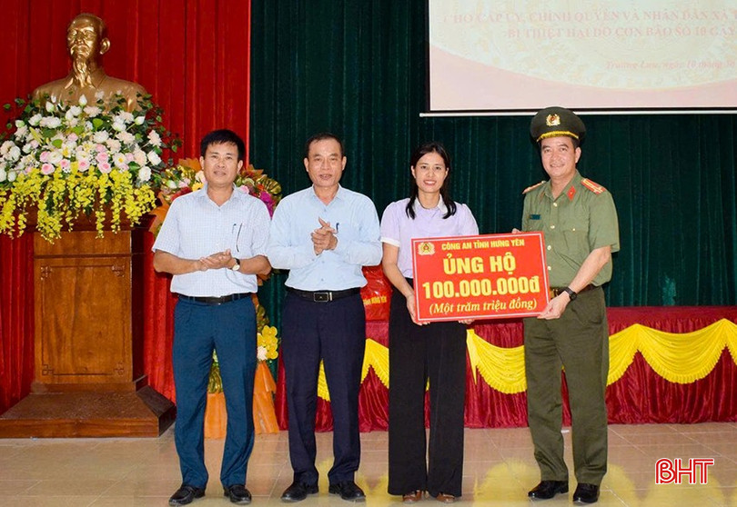Lãnh đạo xã Trường Lưu tiếp nhận hỗ trợ của Công an Tỉnh Hưng Yên hưởng ứng Tháng cao điểm "Vì người nghèo"