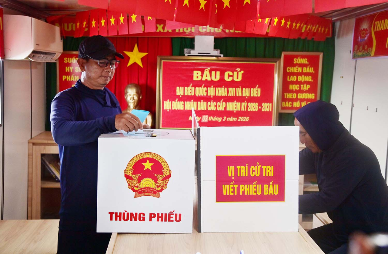 HQVN - Thực hiện cuộc bầu cử đại biểu Quốc hội khóa XVI và đại biểu hội đồng nhân dân các cấp nhiệm kỳ 2026-2031, Quân chủng Hải quân tổ chức bầu cử sớm cho cán bộ, chiến sĩ, ngư dân và lực lượng làm nhiệm vụ dài ngày trên biển. Từ đất liền đến Trường Sa, nhà giàn DK1 và các tàu trực, công tác chuẩn bị được triển khai bài bản, tạo điều kiện để mỗi quân nhân, ngư dân, thuyền viên thực hiện đầy đủ quyền và nghĩa vụ công dân.