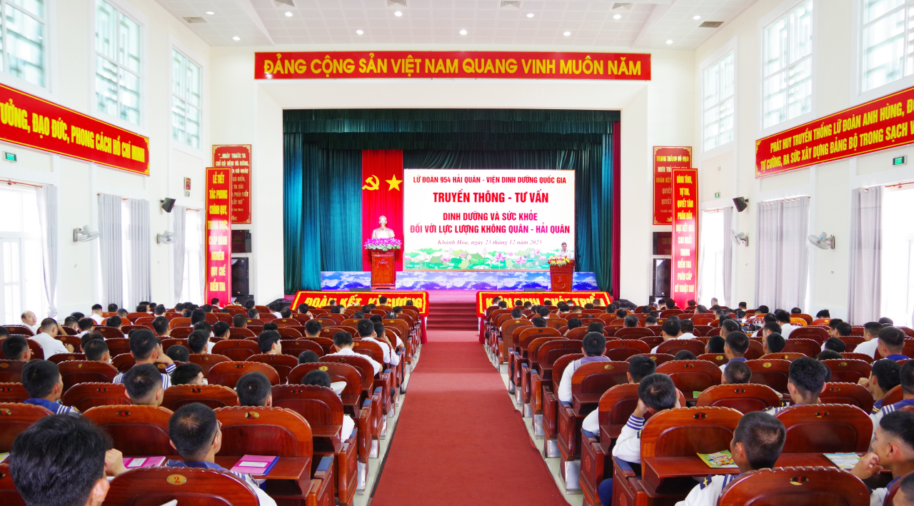 HQ Online - Ngày 23/12, tại phường Bắc Cam Ranh, tỉnh Khánh Hòa, Lữ đoàn 954 Hải quân phối hợp với Viện Dinh dưỡng quốc gia (Bộ Y tế) tổ chức truyền thông, tư vấn dinh dưỡng và sức khỏe đối với lực lượng không quân hải quân.