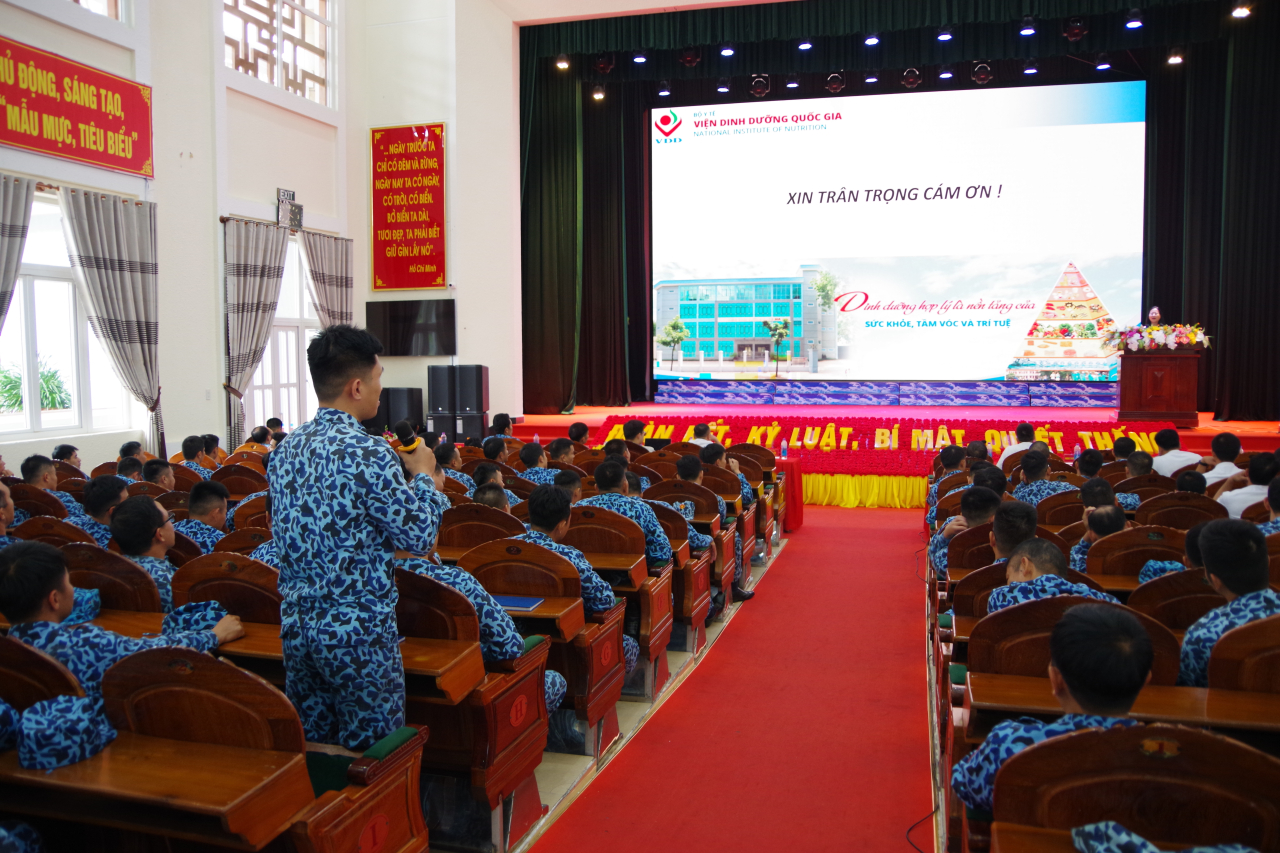 Tham dự buổi truyền thông có các chuyên gia của Viện Dinh dưỡng Quốc gia, chỉ huy Lữ đoàn 189 và cán bộ, thủy thủ Lữ đoàn 189, Trung đoàn 196 Hải quân.