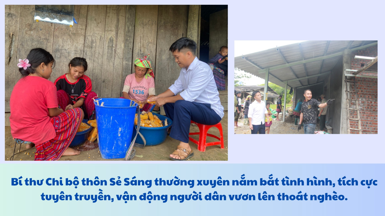 Anh Lý A Sâu - Bí thư Chi bộ thôn Sẻ Sáng chia sẻ: Năm 2025, thôn được giao giảm 7 hộ nghèo. Chi bộ đã xây dựng và ban hành nghị quyết về giảm nghèo, phân công nhiệm vụ cụ thể cho từng đảng viên phụ trách các nhóm hộ để tiên phong đi trước, làm trước rồi tuyên truyền, vận động, hướng dẫn người dân thực hiện theo".