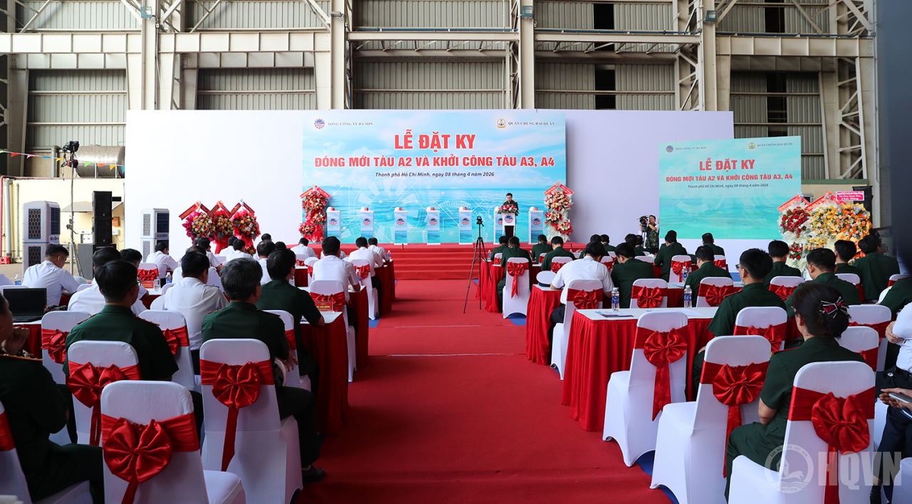 HQ Online - Chiều 8/4, tại TP. Hồ Chí Minh, Phó Đô đốc Trần Thanh Nghiêm, Ủy viên Trung ương Đảng, Ủy viên Quân ủy Trung ương, Tư lệnh Hải quân dự Lễ đặt ky đóng mới tàu tại Tổng công ty Ba Son, Tổng cục Công nghiệp Quốc phòng (TCCNQP).