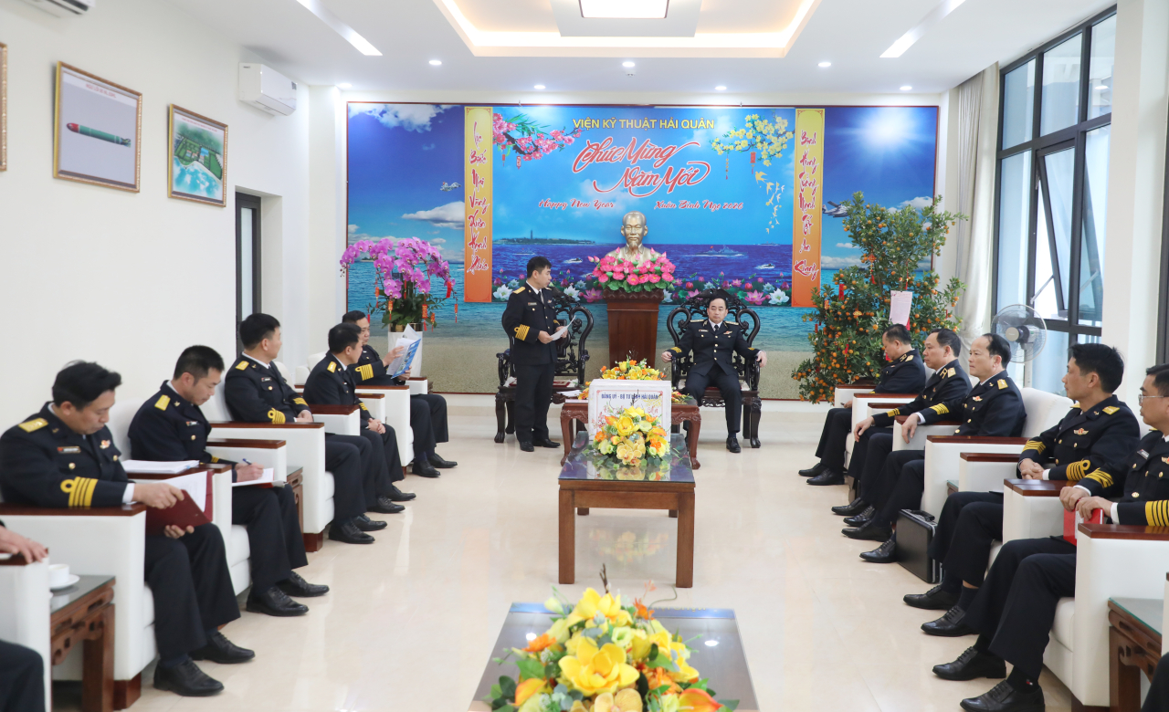 Thủ trưởng Viện Kỹ thuật Hải quân báo cáo công tác sẵn sàng chiến đấu và đón Tết với Phó Đô đốc Trần Thanh Nghiêm