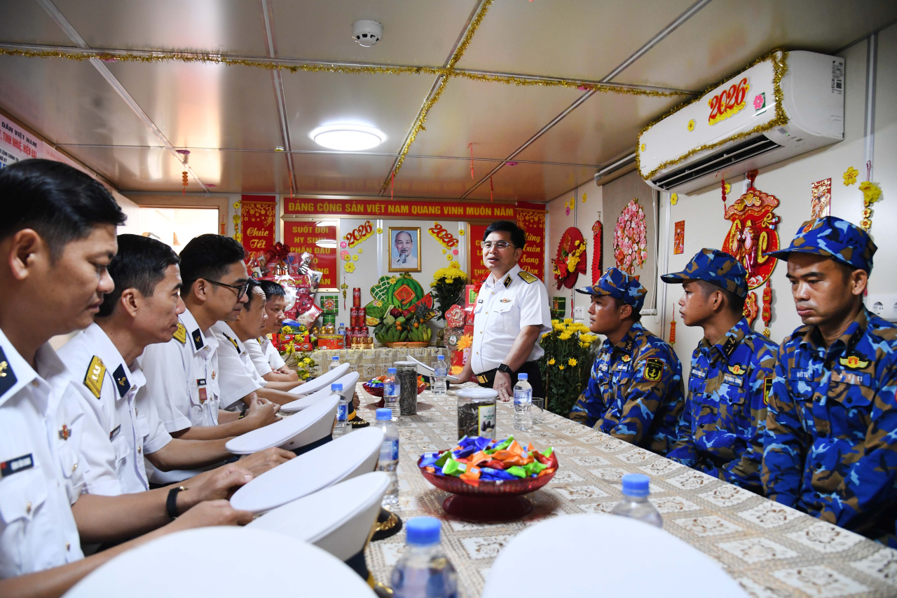 Phát biểu tại buổi gặp mặt, Chuẩn Đô đốc Trịnh Xuân Tùng ân cần thăm hỏi, động viên cán bộ, chiến sĩ Tàu 627; đồng thời gửi những lời chúc tốt đẹp tới các quân nhân và gia đình nhân dịp Tết cổ truyền của dân tộc.