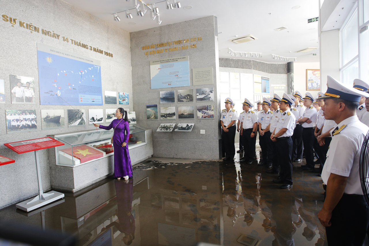 Sau lễ dâng hương, dâng hoa, các đại biểu đã tham quan và nghe giới thiệu về các hình ảnh, tư liệu lịch sử trưng bày tại Khu tưởng niệm chiến sĩ Gạc Ma.