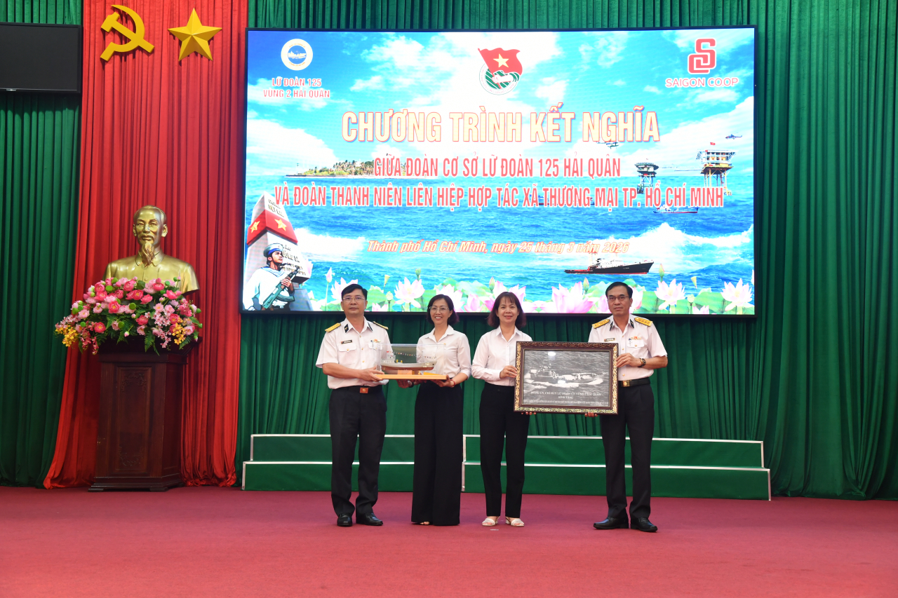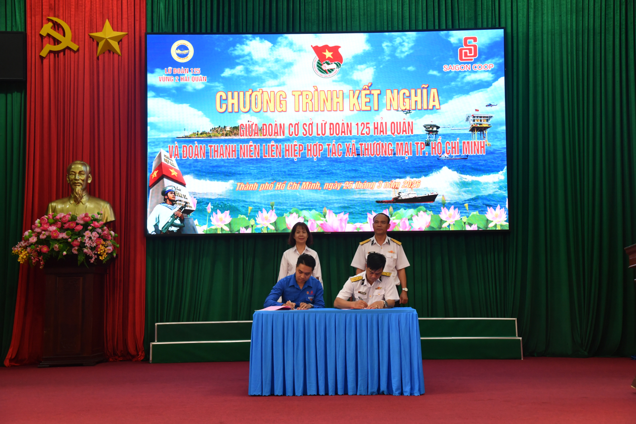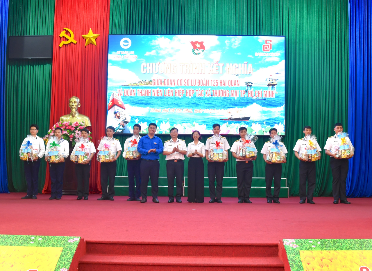 HQ Online - Sáng 25/3, tại phường Cát Lái, TP Hồ Chí Minh, Đoàn cơ sở Lữ đoàn 125 (Vùng 2 Hải quân) phối hợp với Đoàn Thanh niên Liên hiệp Hợp tác xã Thương mại thành phố (Saigon Co.op) tổ chức chương trình tham quan, giao lưu và ký kết nghĩa giữa hai đơn vị.