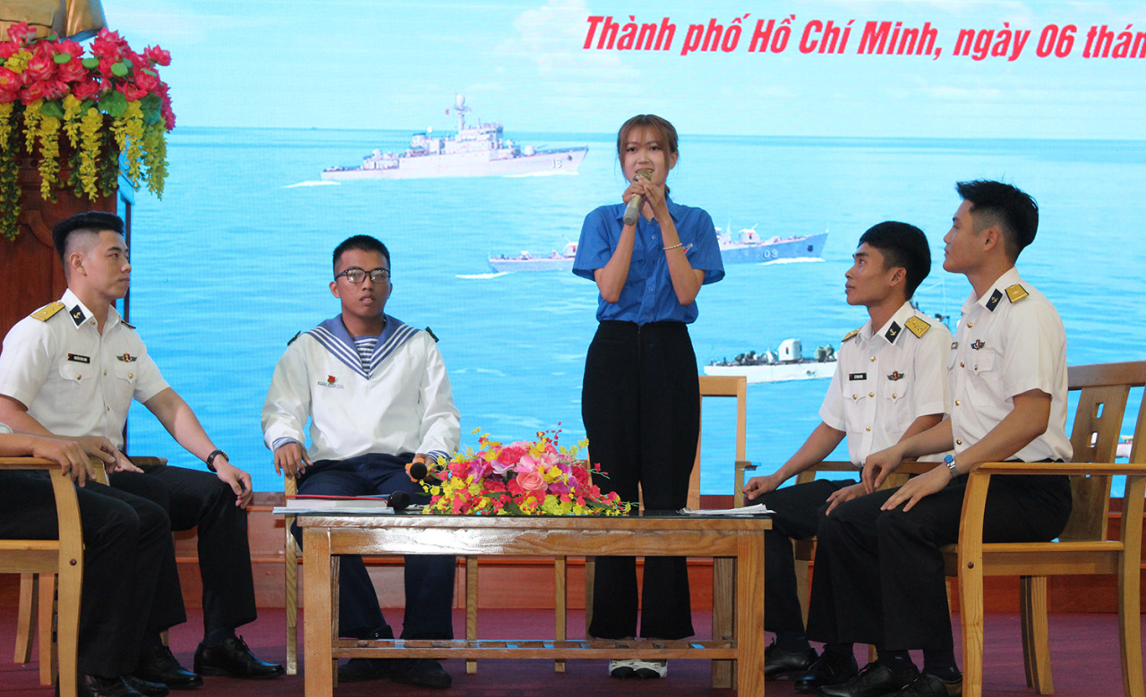 HQ Online - Tối 6/3, tại P. Phước Thắng (TP. Hồ Chí Minh), Đoàn cơ sở Lữ đoàn 171, Vùng 2 Hải quân tổ chức tọa đàm với chủ đề “Tuổi trẻ Lữ đoàn 171 xung kích, đổi mới, sáng tạo thực hiện 3 tiên phong trong hoạt động công tác đoàn và phong trào thanh niên”. Tham gia tọa đàm có đông đảo đoàn viên, thanh niên các chi đoàn trong Lữ đoàn và đại diện một số đơn vị kết nghĩa.