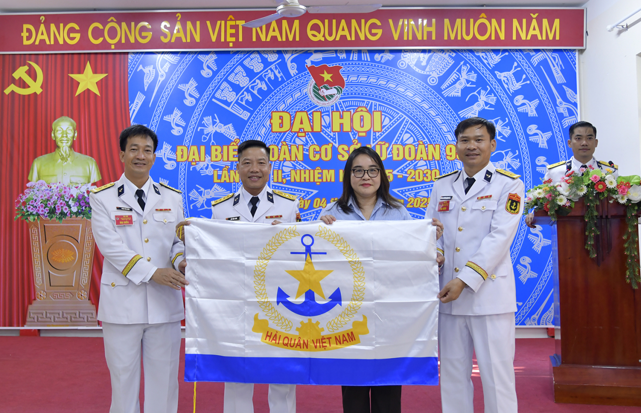 Nhân dịp này, đồng chí Đỗ Thị Nga, Trưởng ban thường trực Mạng lưới Tình nguyện quốc gia khu vực miền Trung thuộc Trung ương Đoàn TNCS Hồ Chí Minh đã đến chúc mừng đại hội và tặng hàng trăm lá cờ Hải quân Việt Nam cho tuổi trẻ Lữ đoàn 955.