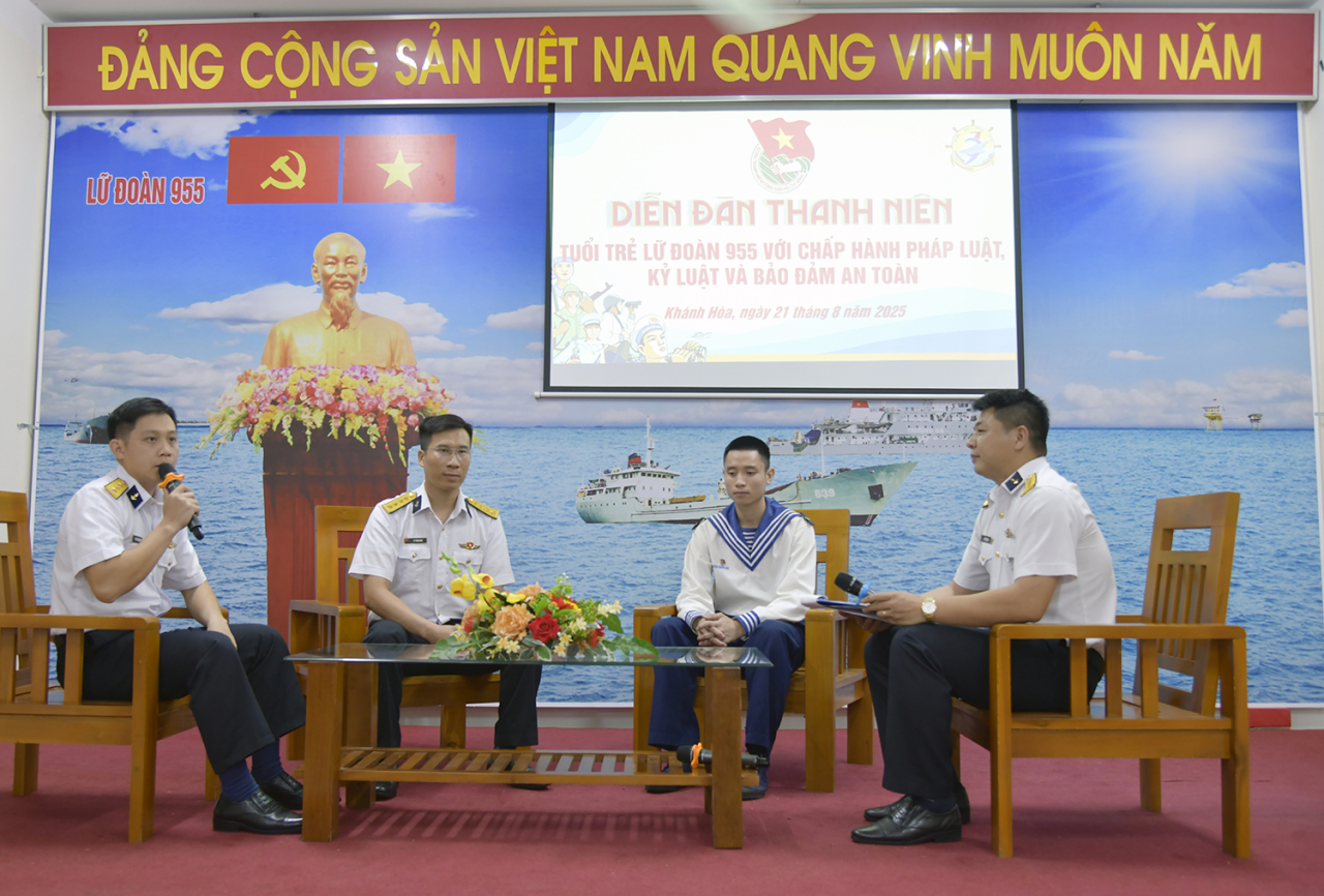 “Mỗi cán bộ, đoàn viên phải là tấm gương sáng trong chấp hành kỷ luật; giữ nghiêm lễ tiết, tác phong quân nhân; xây dựng môi trường văn hóa quân sự lành mạnh, góp phần tô thắm truyền thống vẻ vang của Hải quân nhân dân Việt Nam anh hùng” - Đại tá Đỗ Văn Sơn nhấn mạnh.