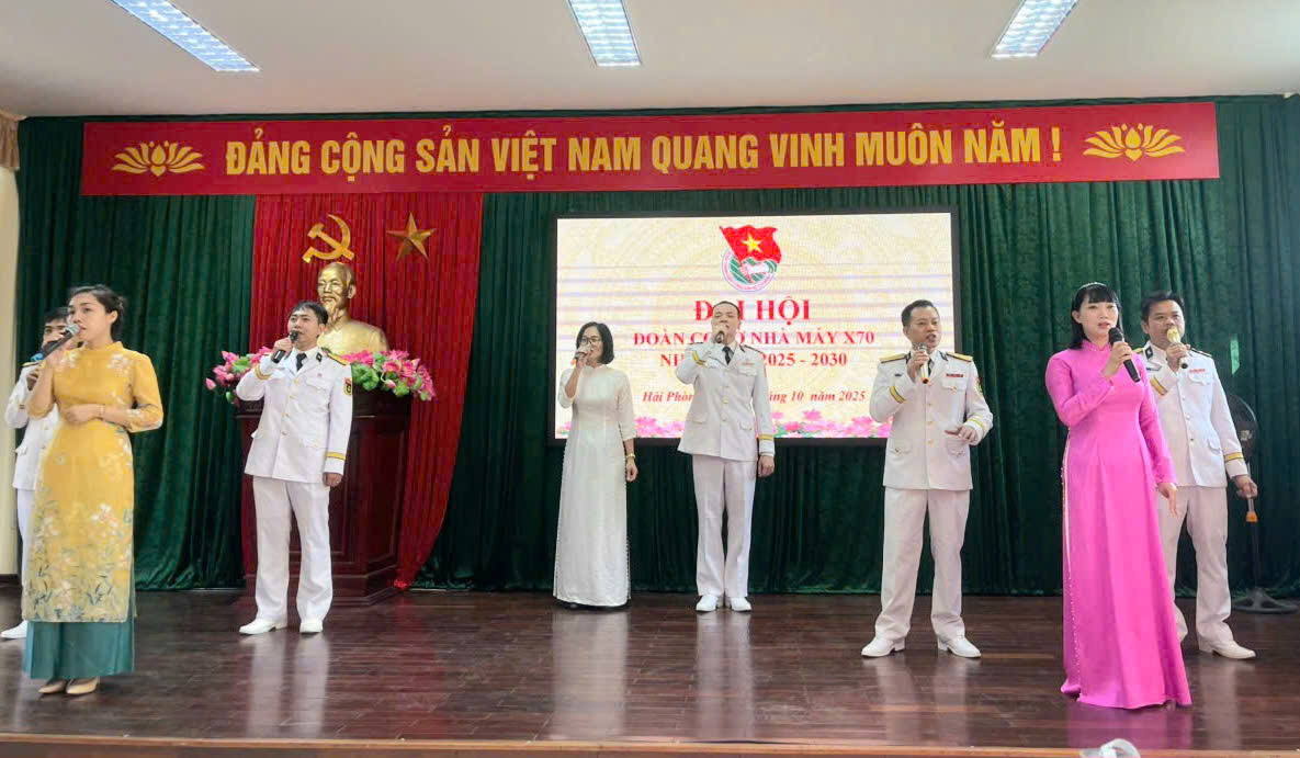 HQ Online - Ngày 9/10, tại Hải Phòng, Đoàn cơ sở Nhà máy X70 (Cục Hậu cần – Kỹ thuật Hải quân) tổ chức Đại hội nhiệm kỳ 2025-2030. Thượng tá Lê Đình Phi, Bí thư Đảng uỷ, Chính uỷ Nhà máy dự và chỉ đạo.