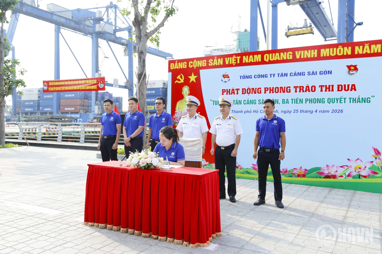 Đông đảo cán bộ, đoàn viên thanh niên Tân cảng Sài Gòn tham gia phát động thi đua