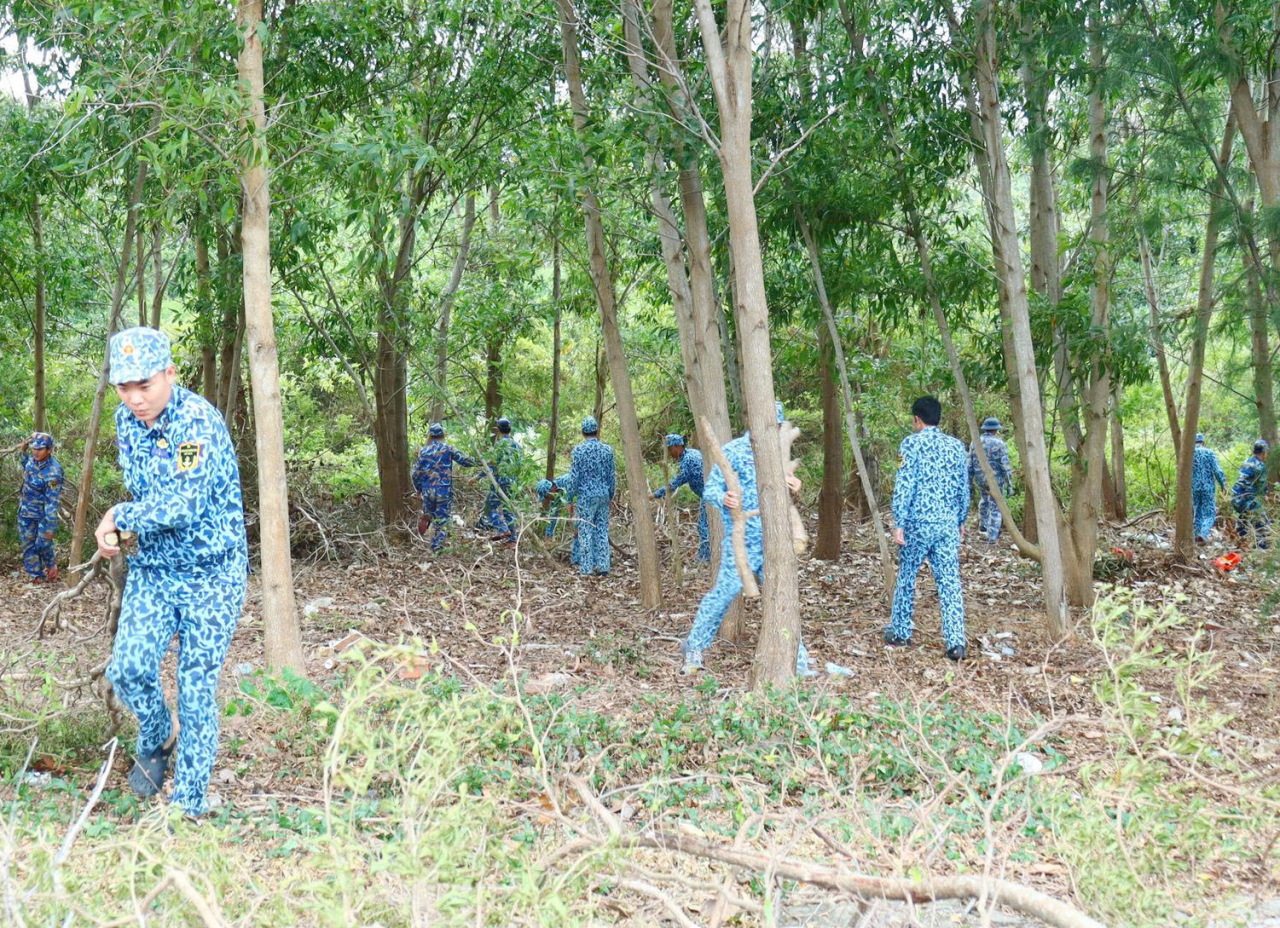 Với tinh thần xung kích, trách nhiệm và quyết tâm cao, hàng chục cán bộ, đoàn viên, thanh niên đã đồng loạt ra quân tổng dọn vệ sinh môi trường, thu gom cành cây khô, phát quang bụi rậm, làm sạch khuôn viên doanh trại.