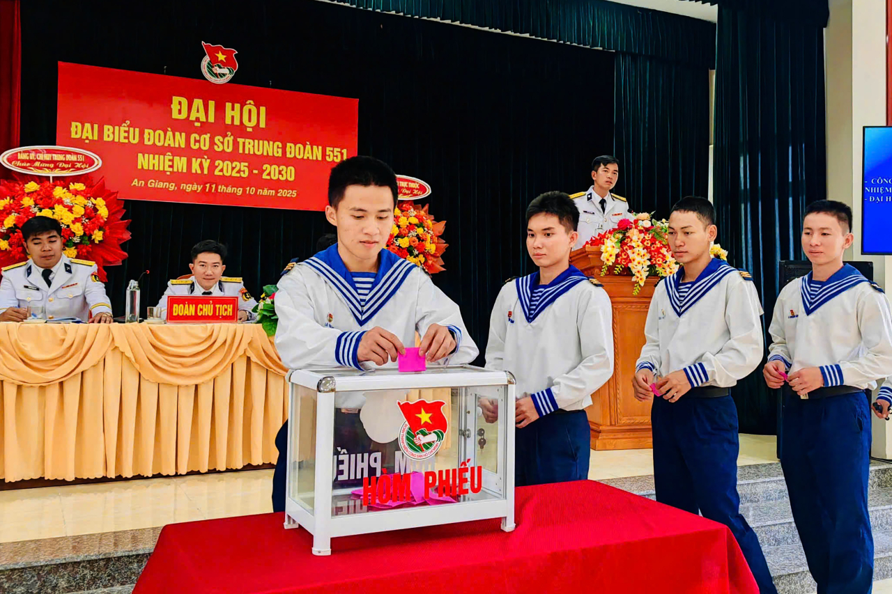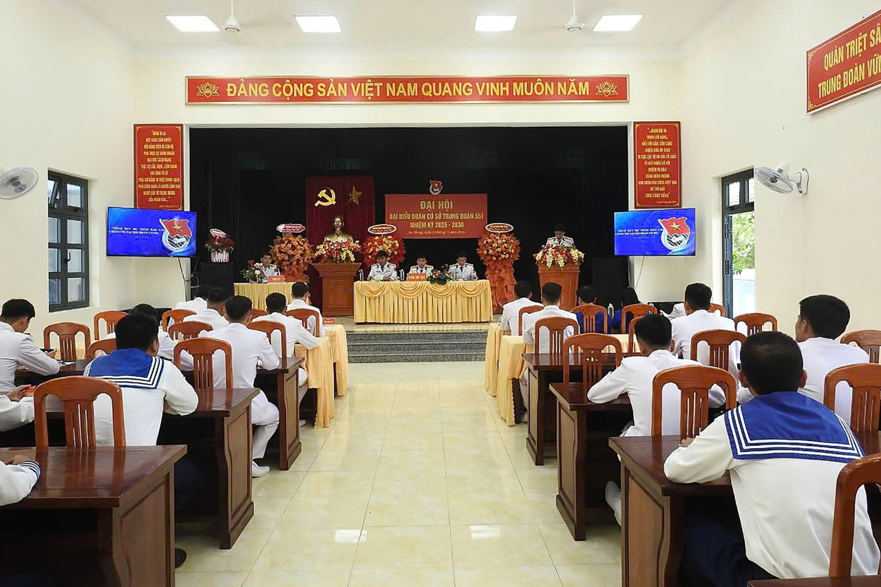 HQ Online - Ngày 11/10, tại đặc khu Phú Quốc, tỉnh An Giang, Đoàn cơ sở Trung đoàn 551, Vùng 5 Hải quân tổ chức Đại hội nhiệm kỳ 2025-2030. Thượng tá Đặng Trọng Sơn, Phó Chính ủy Trung đoàn dự và chỉ đạo.