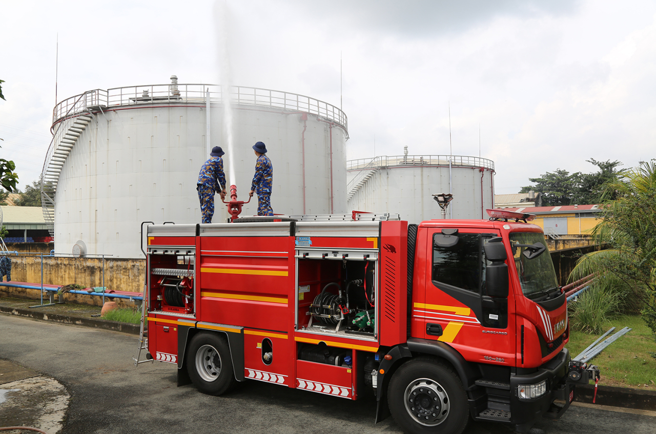 Luyện tập chữa cháy ở phân kho xăng dầu