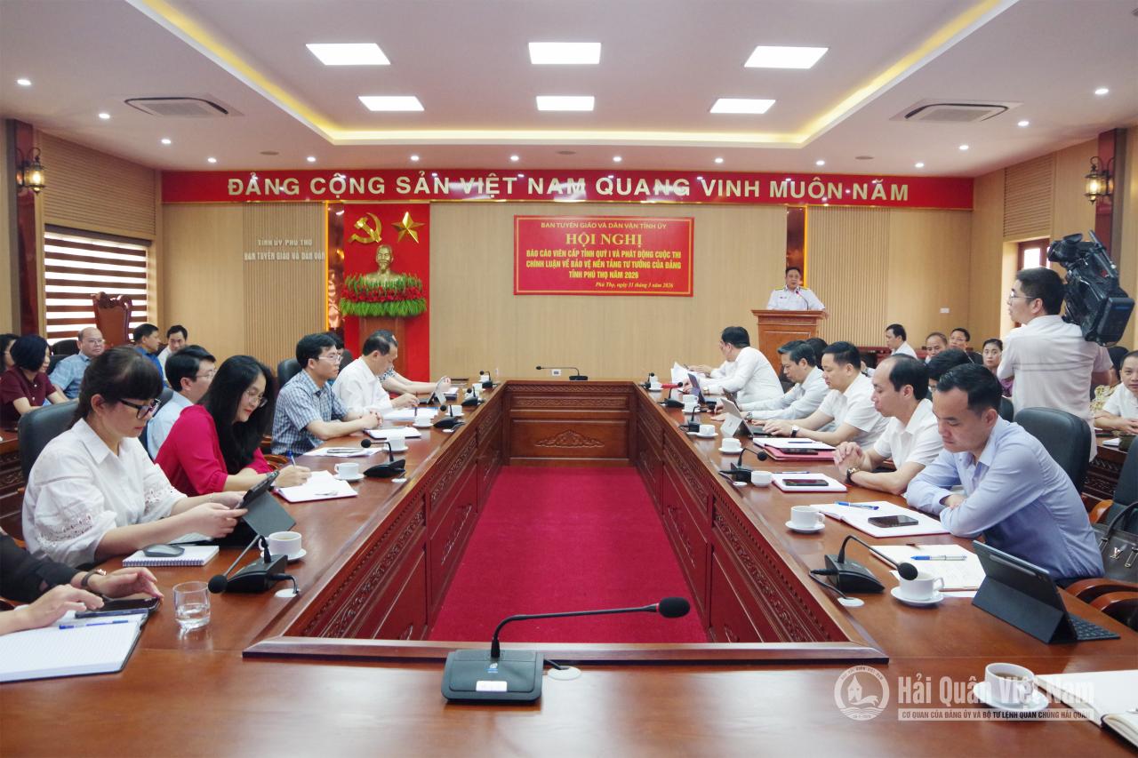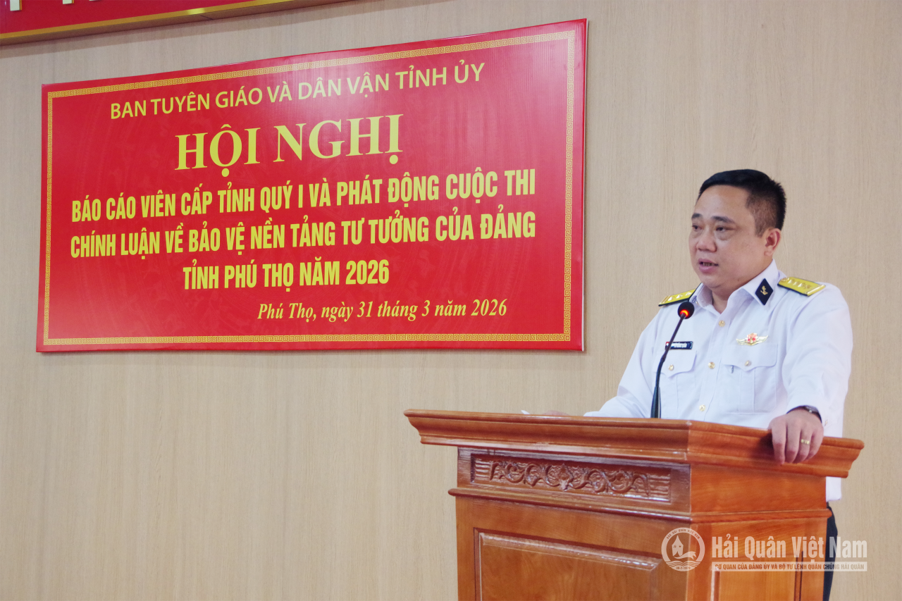 HQ Online - Sáng 31/3, đoàn công tác của Viện Kỹ thuật Hải quân phối hợp với Ban Tuyên giáo và Dân vận; Sở Giáo dục và Đào tạo tỉnh Phú Thọ tổ chức Hội nghị thông tin, tuyên truyền tình hình biển đảo và thu hút nguồn nhân lực. Đại tá Tô Hồng Quân, Bí thư Đảng ủy, Chính ủy Viện Kỹ thuật Hải quân làm trưởng đoàn.