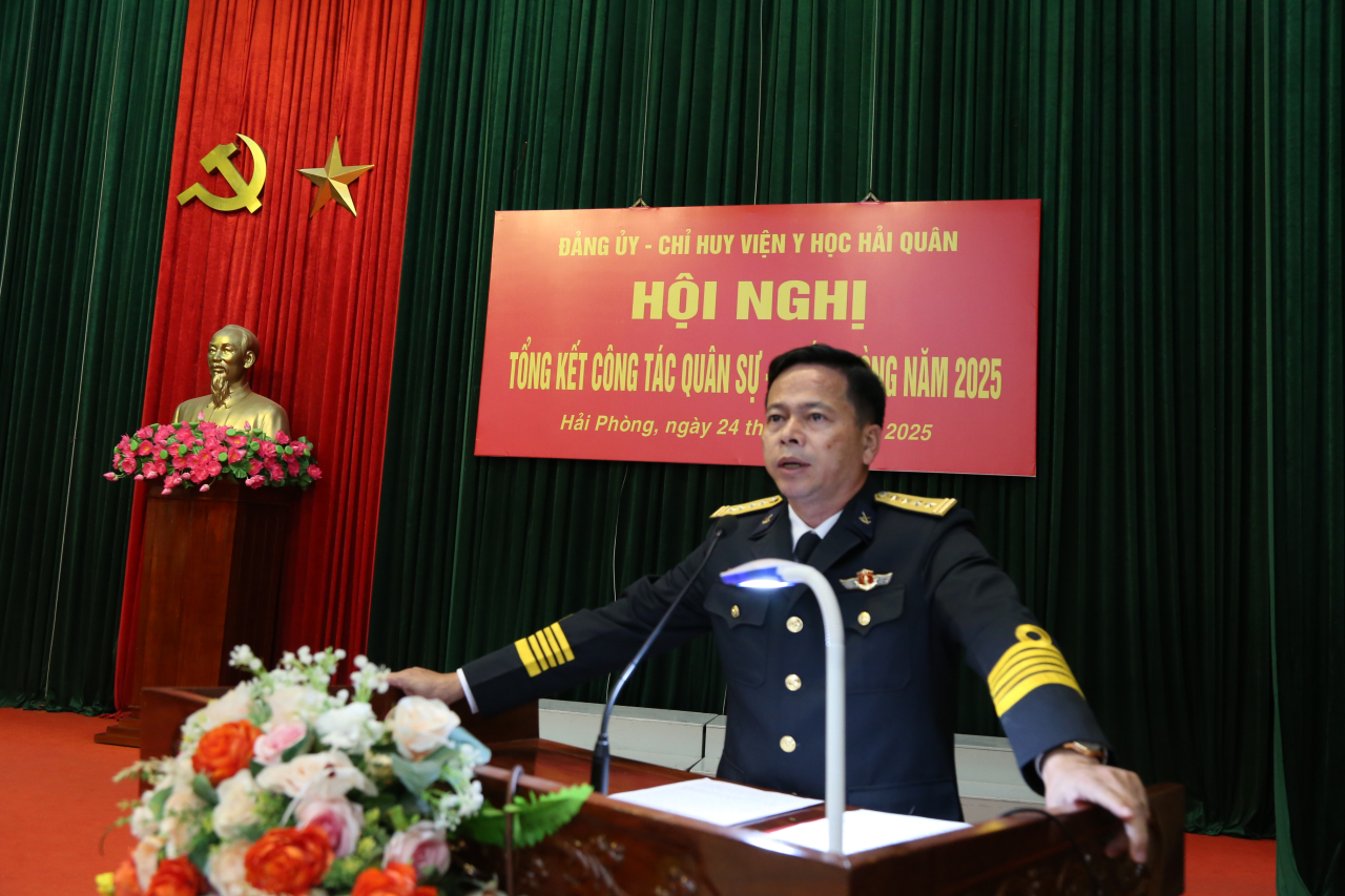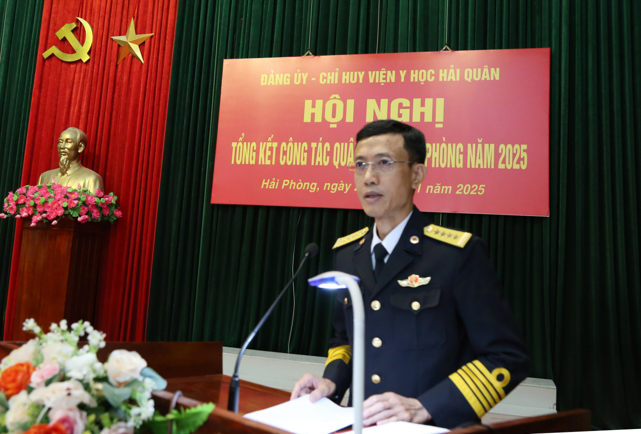 HQ Online - Chiều 24/11, tại thành phố Hải Phòng, Viện Y học (Cục Hậu cần - Kỹ thuật Hải quân) tổ chức Hội nghị quân sự - quốc phòng năm 2025. Đại tá Nguyễn Duy Thiều, Phó Chủ nhiệm Hậu cần - Kỹ thuật Hải quân dự và chỉ đạo hội nghị.
