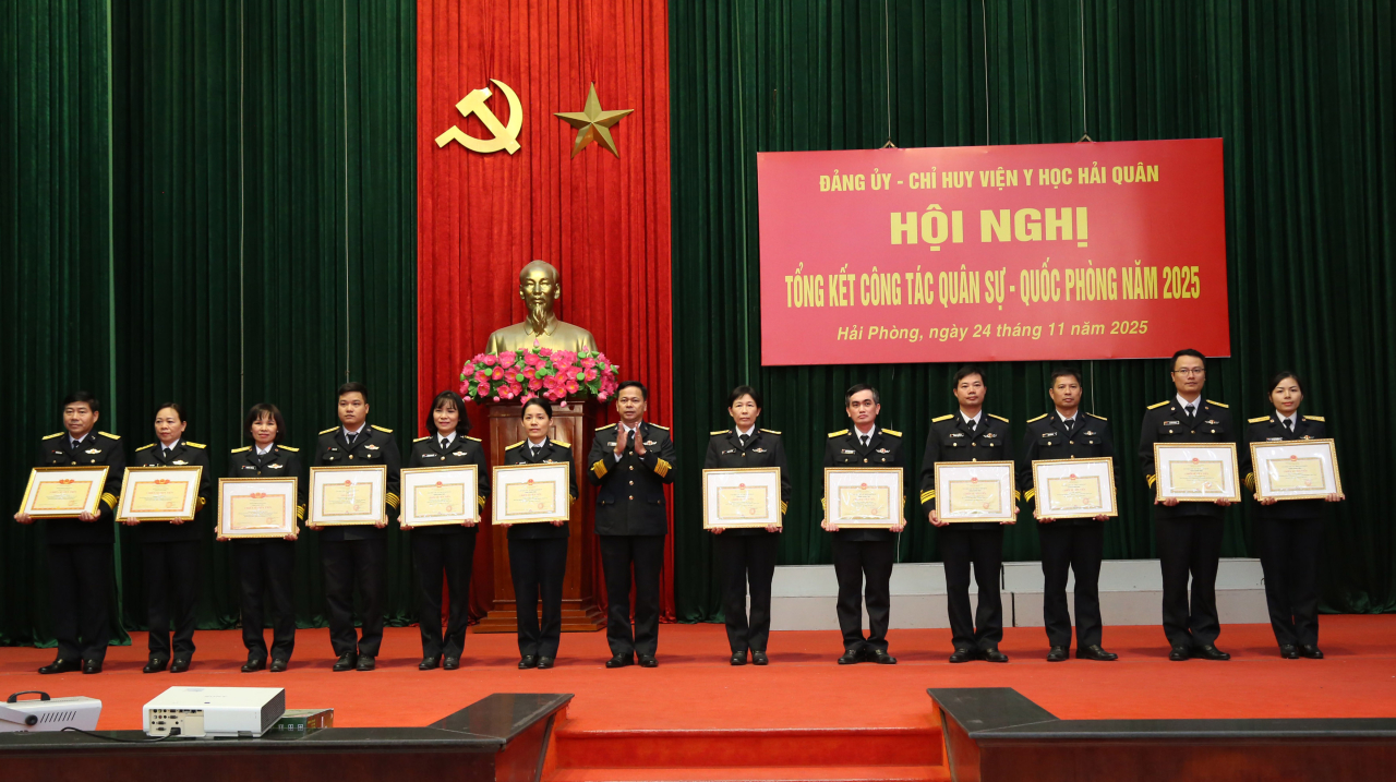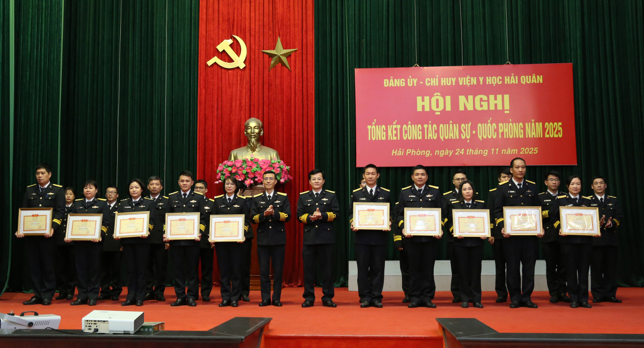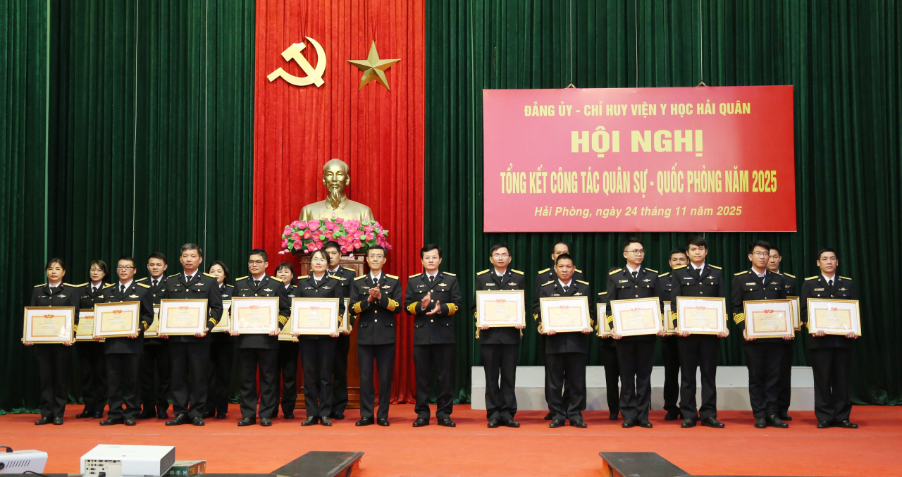 Dịp này, Viện Y học Hải quân tổng kết phong trào thi đua quyết thắng năm 2025 và phát động thi đua cao điểm; trao thưởng 11 tập thể, 40 cá nhân xuất sắc trong thực hiện nhiệm vụ.