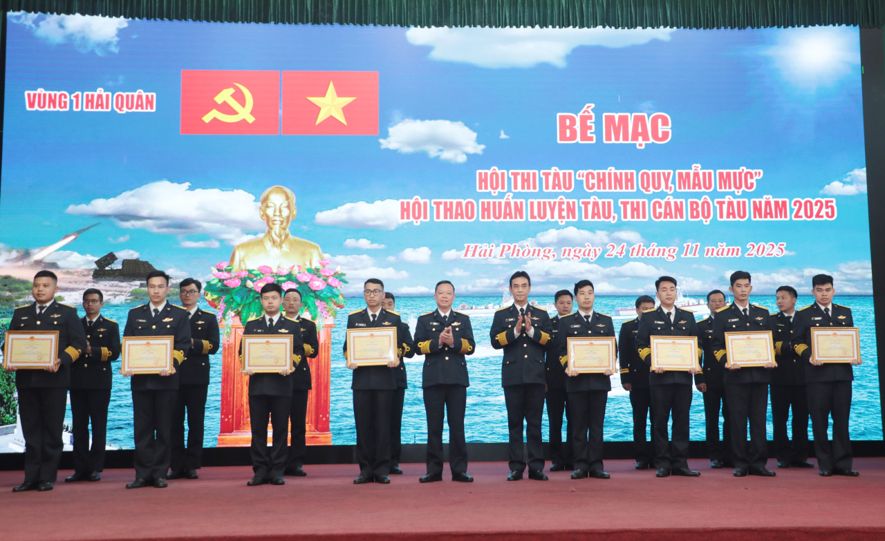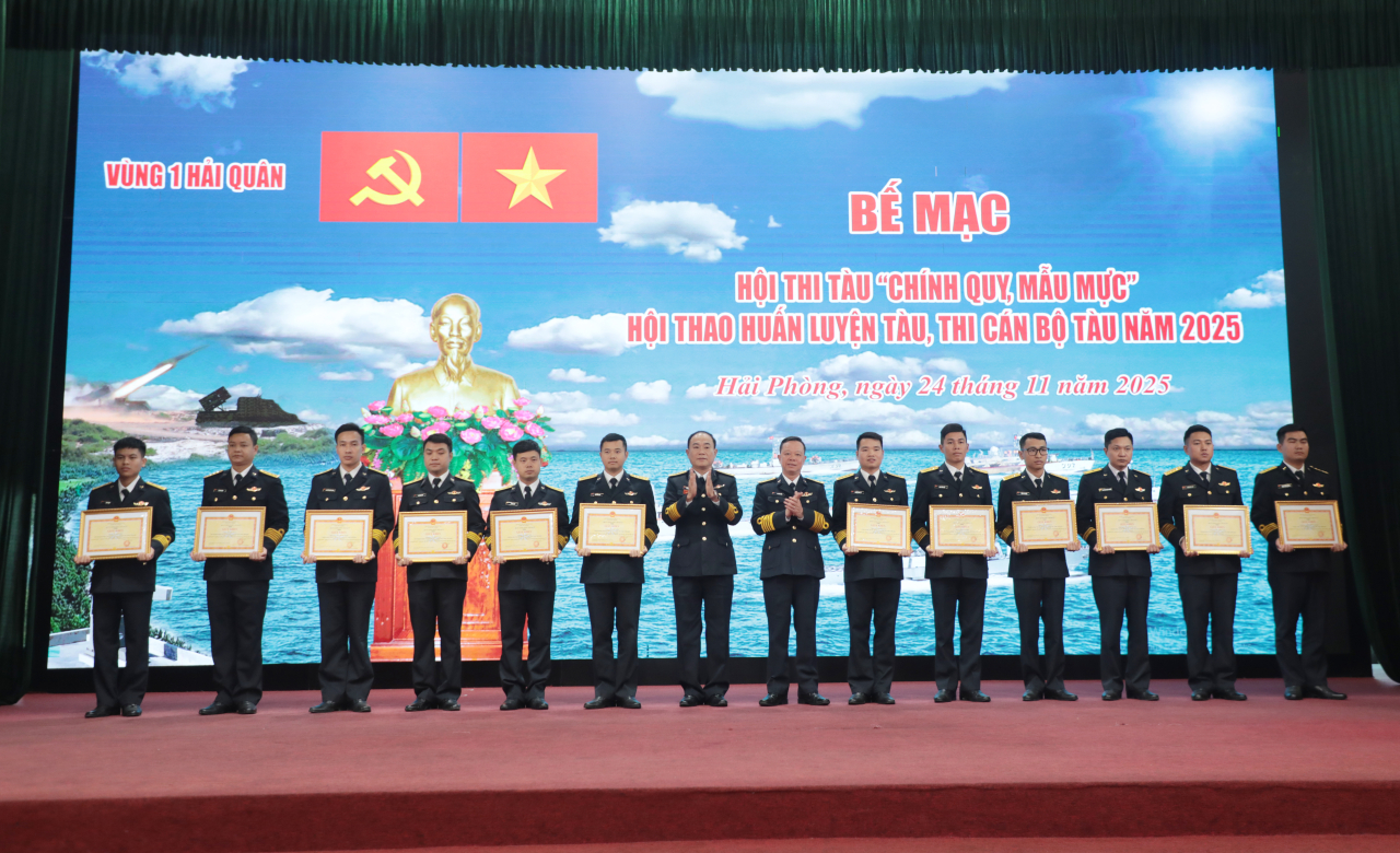 HQ Online - Sáng 24/11, tại Hải Phòng, Bộ Tư lệnh Vùng 1 Hải quân tổ chức bế mạc Hội thi tàu “chính quy, mẫu mực”, hội thao huấn luyện tàu, thi cán bộ tàu cấp vùng năm 2025. Chuẩn Đô đốc Nguyễn Văn Bách, Phó Tư lệnh, Tham mưu trưởng Hải quân dự, chỉ đạo.