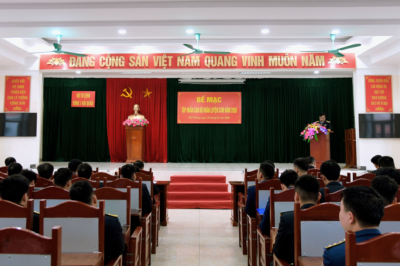 HQ Online - Sáng 16/1, tại Tiểu đoàn 158 (Hải Phòng), Vùng 1 Hải quân tổ chức bế mạc lớp tập huấn cán bộ huấn luyện chiến sĩ mới (CSM) năm 2026. Chuẩn Đô đốc Vũ Văn Nam, Tư lệnh Vùng dự và chỉ đạo.