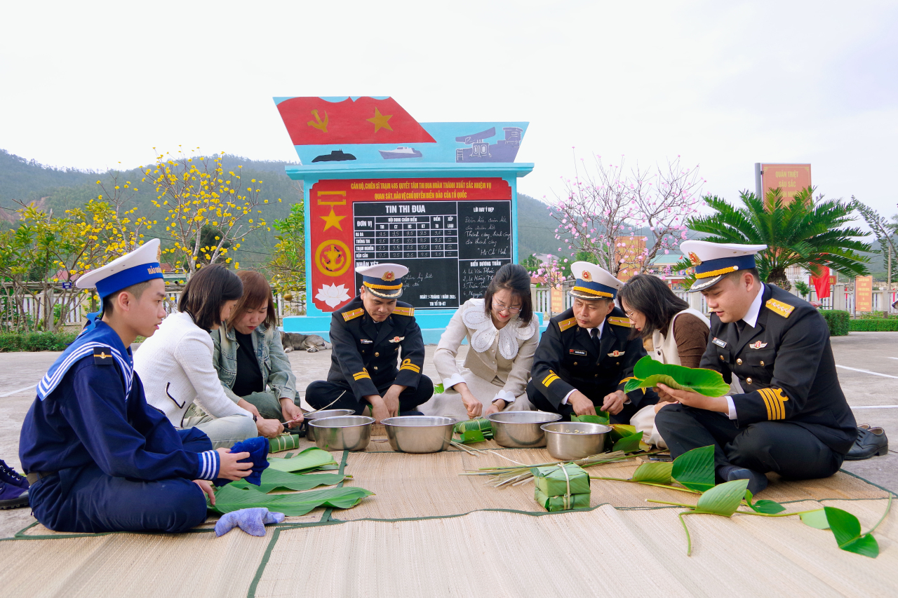 Quân dân trên đảo Trà Bản gói bánh chưng đón Tết