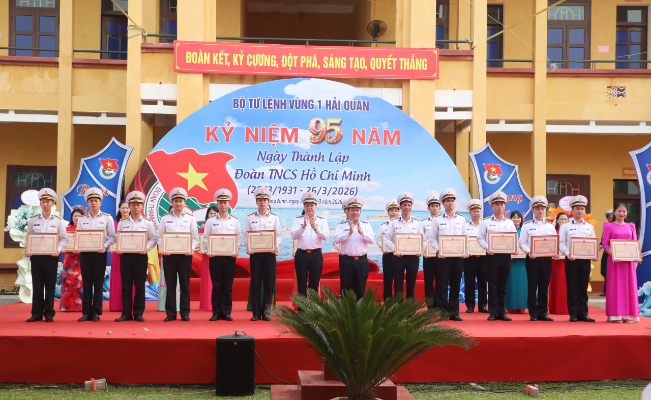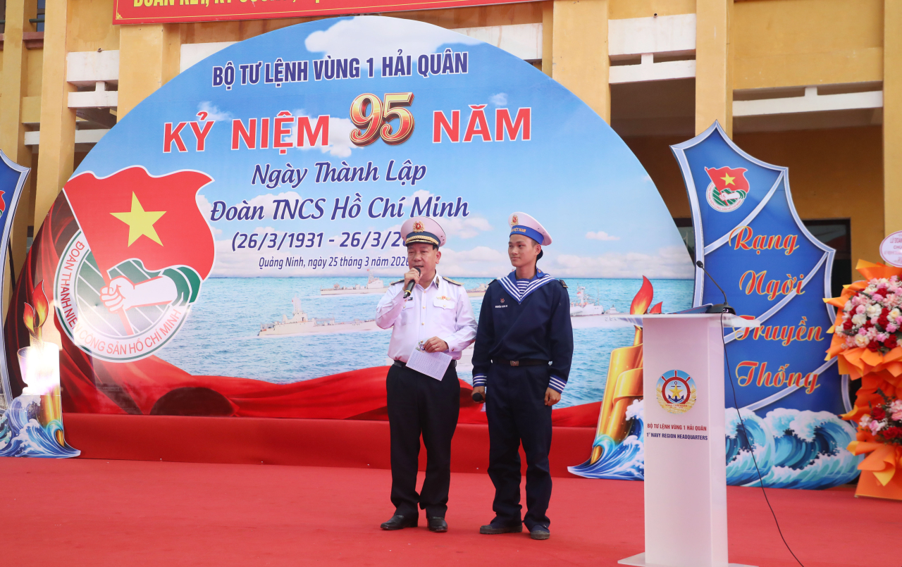 HQ Online - Chiều 25/3, tại Tiểu đoàn 471, Lữ đoàn 147 (Quảng Ninh), Vùng 1 Hải quân tổ chức kỷ niệm 95 năm Ngày thành lập Đoàn thanh niên cộng sản Hồ Chí Minh (26/3/1931 - 26/3/2026). Tham dự chương trình có Đại tá Nguyễn Công Thắng, Phó Chủ nhiệm Chính trị Hải quân; Chuẩn Đô đốc Vũ Văn Nam, Tư lệnh Vùng 1. Chuẩn Đô đốc Trần Xuân Văn, Bí thư Đảng ủy, Chính ủy Vùng 1 chủ trì.