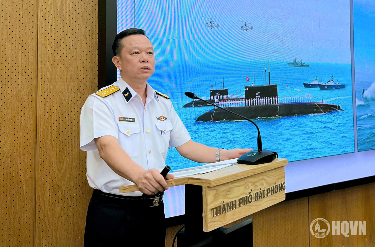 HQ Online - Sáng 23/4, tại TP. Hải Phòng, Vùng 1 Hải quân phối hợp với Ban Tuyên giáo và Dân vận Thành ủy Hải Phòng tổ chức Hội nghị thông tin chuyên đề về tình hình biển đảo năm 2026. Đại tá Vũ Hữu Kiêm, Phó Chính uỷ Vùng 1 dự và trực tiếp thông tin chuyên đề.