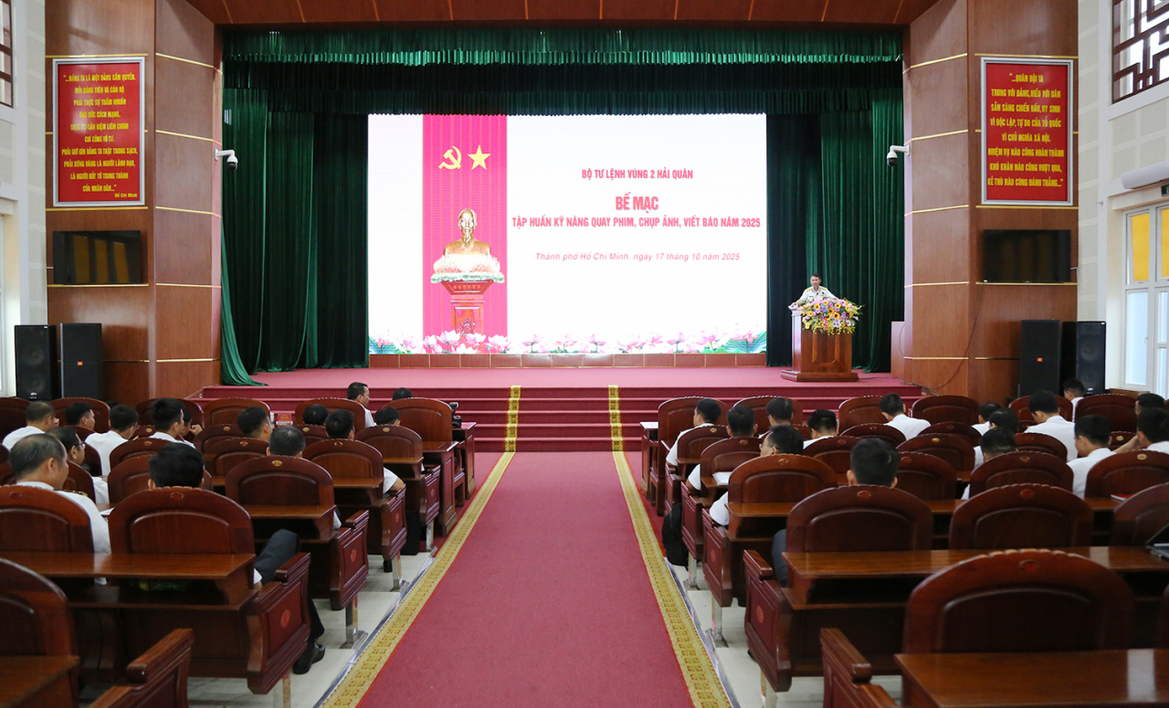 HQ Online - Hơn 500 tin, ảnh, video clip được sáng tác trong 2 ngày tập huấn kỹ năng quay phim, chụp ảnh, viết tin bài năm 2025 của Vùng 2. Buổi bế mạc tập huấn được tổ chức chiều 17/10 tại TP Hồ Chí Minh. Đại tá Phạm Ngọc Quý, Chủ nhiệm Chính trị Vùng 2 tới dự và phát biểu động viên.