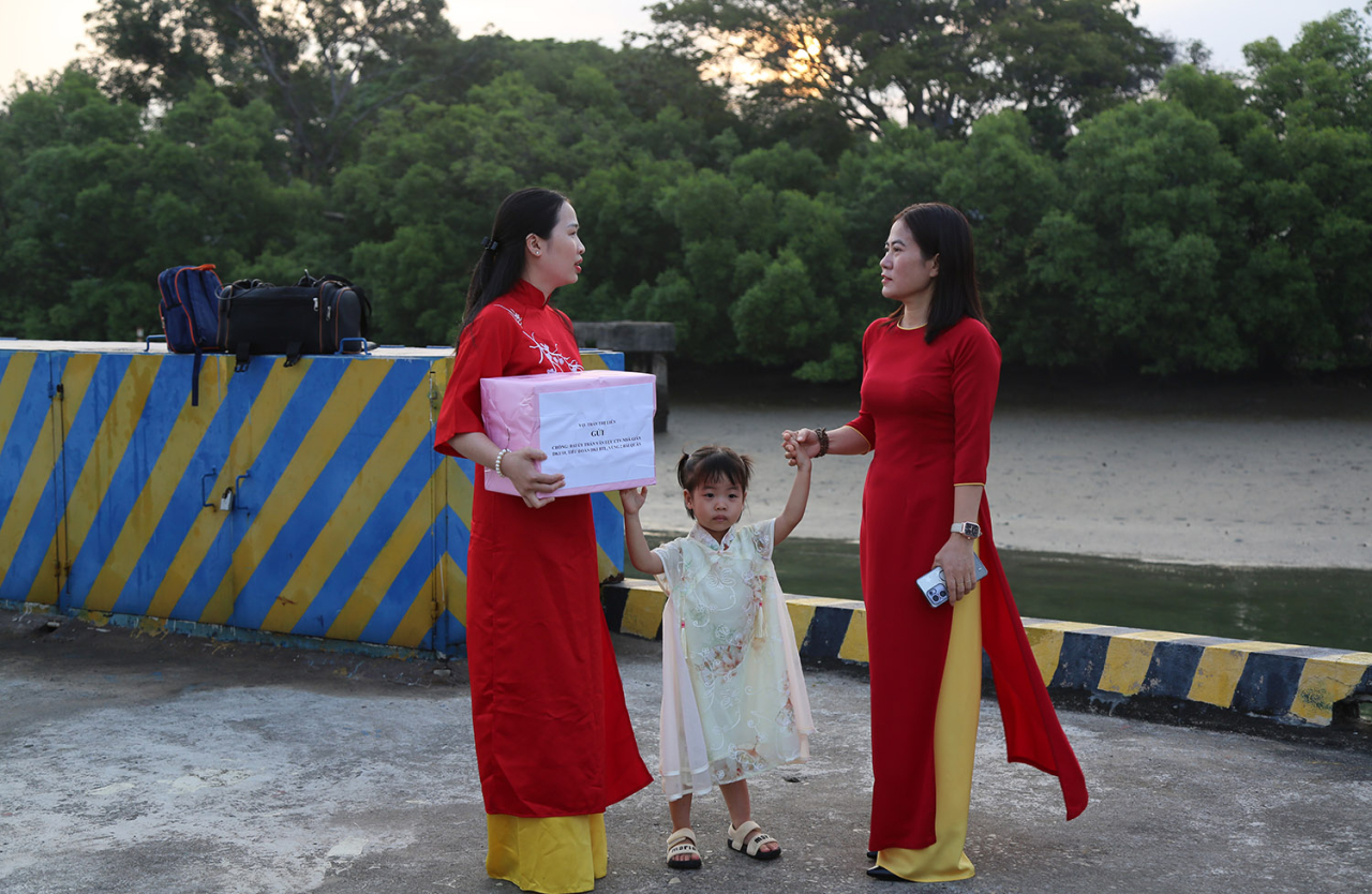 Thân nhân ra tiễn và gửi quà cho người người thân