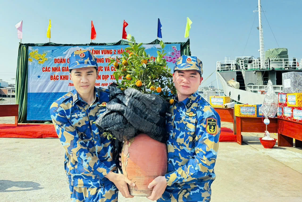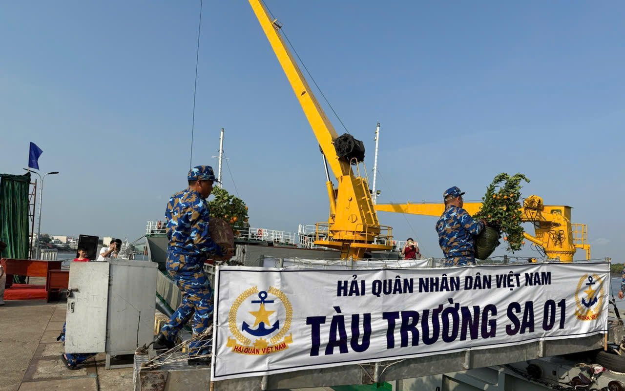 Trong chuyến công tác, đoàn mang theo hàng tấn nhu yếu phẩm, quà Tết phục vụ sinh hoạt của cán bộ, chiến sĩ trên các nhà giàn và tàu trực như gạo nếp, lá dong, thực phẩm khô… Đặc biệt, năm nay có nhiều cây đào, quất do các đơn vị phía Bắc gửi tặng, góp phần mang không khí Tết cổ truyền đến với cán bộ, chiến sĩ nơi đầu sóng ngọn gió.