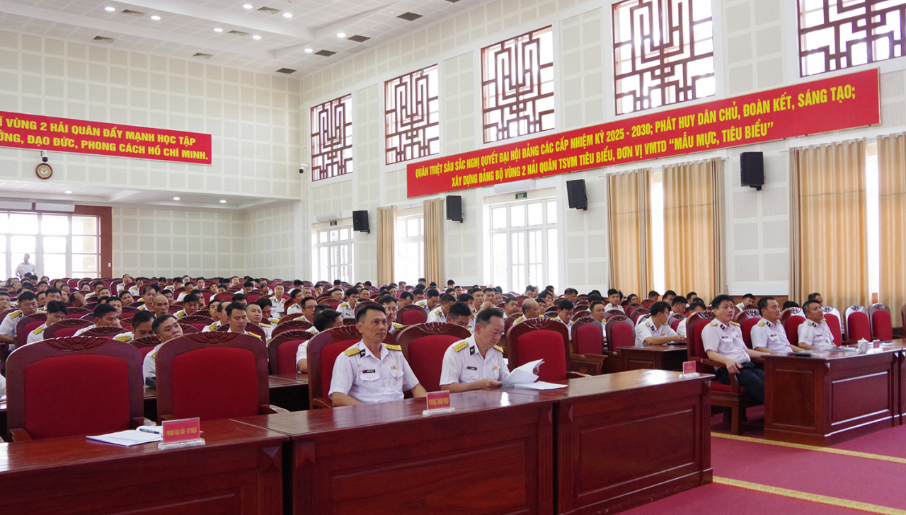 HQ Online - Chiều 4/2, tại xã Long Sơn (TP. Hồ Chí Minh), Đảng uỷ, Bộ Tư lệnh Vùng 2 Hải quân tổ chức Hội nghị thông báo nhanh kết quả Đại hội đại biểu toàn quốc lần thứ XIV của Đảng cho các đồng chí sĩ quan, quân nhân chuyên nghiệp khối cơ quan Bộ Tư lệnh Vùng, Lữ đoàn 167 và Tiểu đoàn DK1. Đại tá Phạm Ngọc Quý, Chủ nhiệm Chính trị Vùng 2 Hải quân chủ trì.
