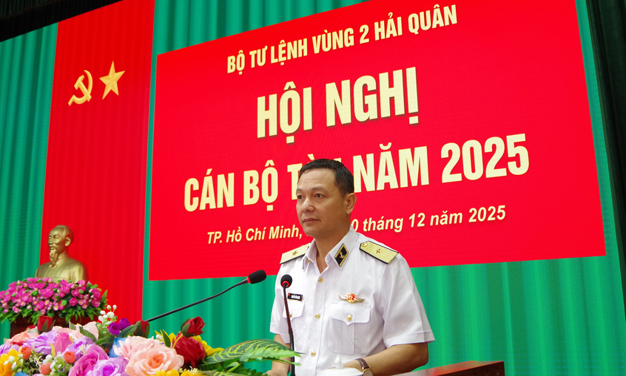 HQ Online - Sáng 10/12, tại xã Long Sơn (TP Hồ Chí Minh), Bộ Tư lệnh (BTL) Vùng 2 Hải quân tổ chức Hội nghị cán bộ tàu năm 2025. Chuẩn Đô đốc Nguyễn Văn Quán, Tư lệnh Vùng dự và chủ trì hội nghị. Cùng dự có các đồng chí Thủ trưởng BTL Vùng; lãnh đạo, chỉ huy các cơ quan, đơn vị trực thuộc, cán bộ chủ trì các đơn vị cấp tiểu đoàn, hải đội.