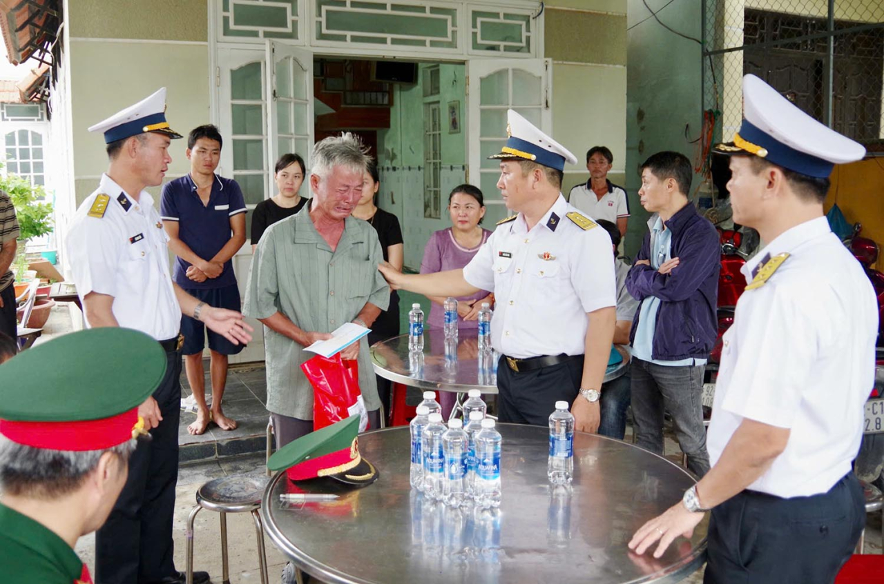 Chuẩn Đô đốc Nguyễn Đăng Tiến, Bí thư Đảng ủy, Chính ủy Vùng 3 trao quà hỗ trợ quân nhân bị thiệt hại do lũ lụt