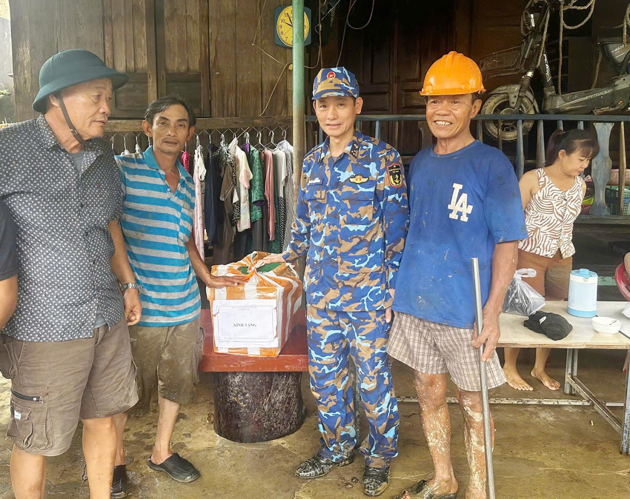 Đại tá Vũ Đình Hiển, Phó Tư lệnh, Tham mưu trưởng Vùng 3 trao quà, thăm hỏi gia đình chính sách và gia đình thiệt hại do lũ lụt