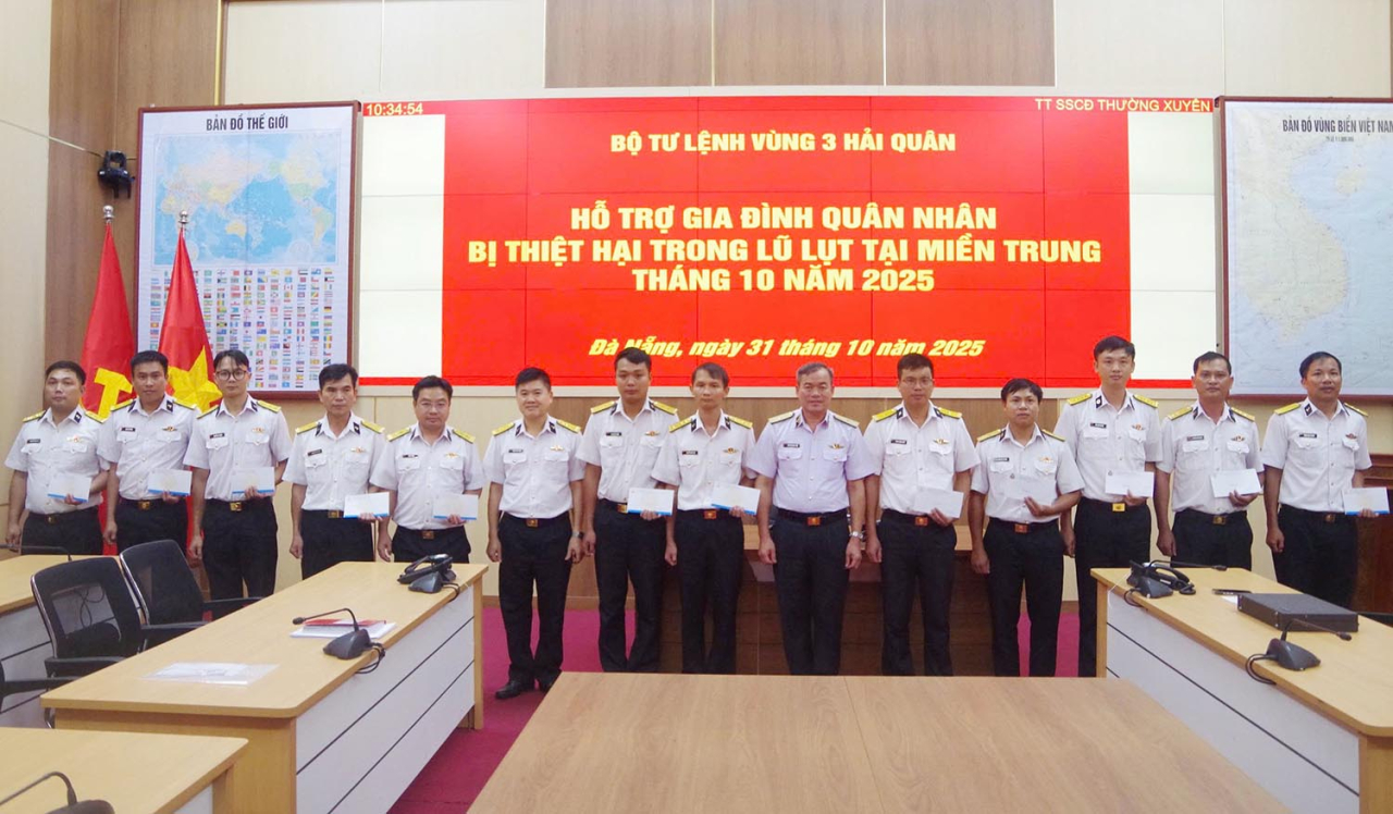 Trong ngày, Vùng 3 Hải quân đã tổ chức trao quà hỗ trợ các gia đình quân nhân thuộc các cơ quan, đơn vị của Vùng bị thiệt hại do lũ lụt gây ra.