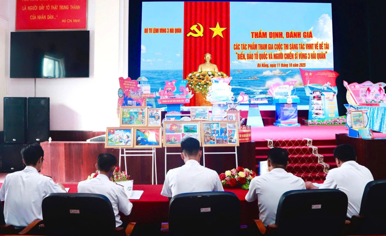 HQ Online - Ngày 11/10, tại TP Đà Nẵng, Vùng 3 Hải quân tổ chức thẩm định, đánh giá các tác phẩm tham gia Cuộc thi sáng tác văn học nghệ thuật về đề tài “Biển, đảo Tổ quốc và người chiến sĩ Vùng 3 Hải quân”. Đại tá Nguyễn Quang Vinh, Phó Chủ nhiệm Chính trị Vùng chủ trì.